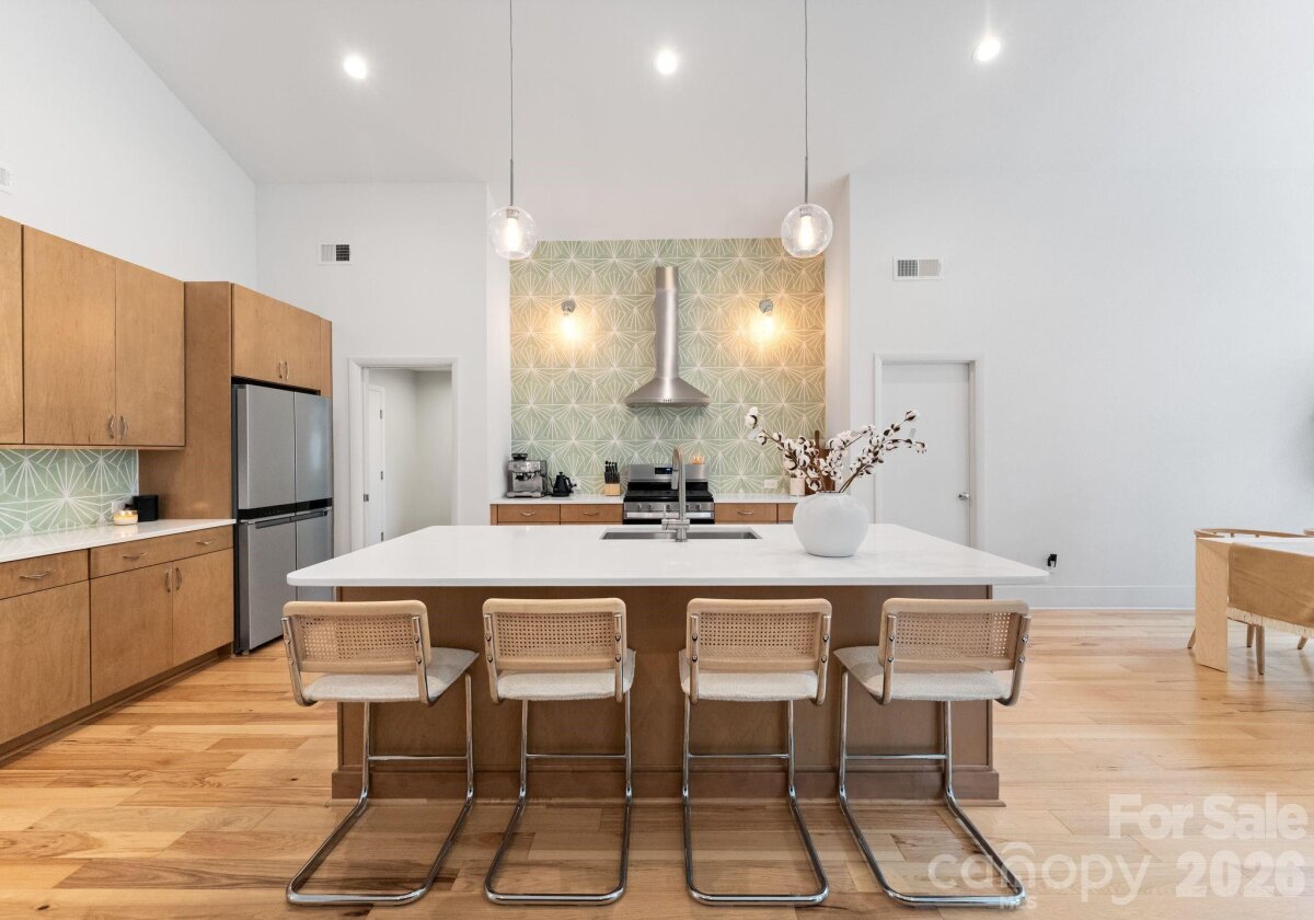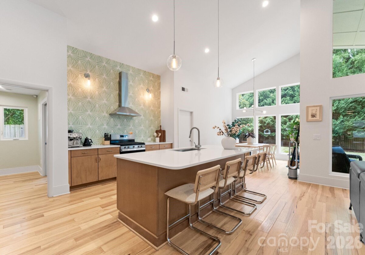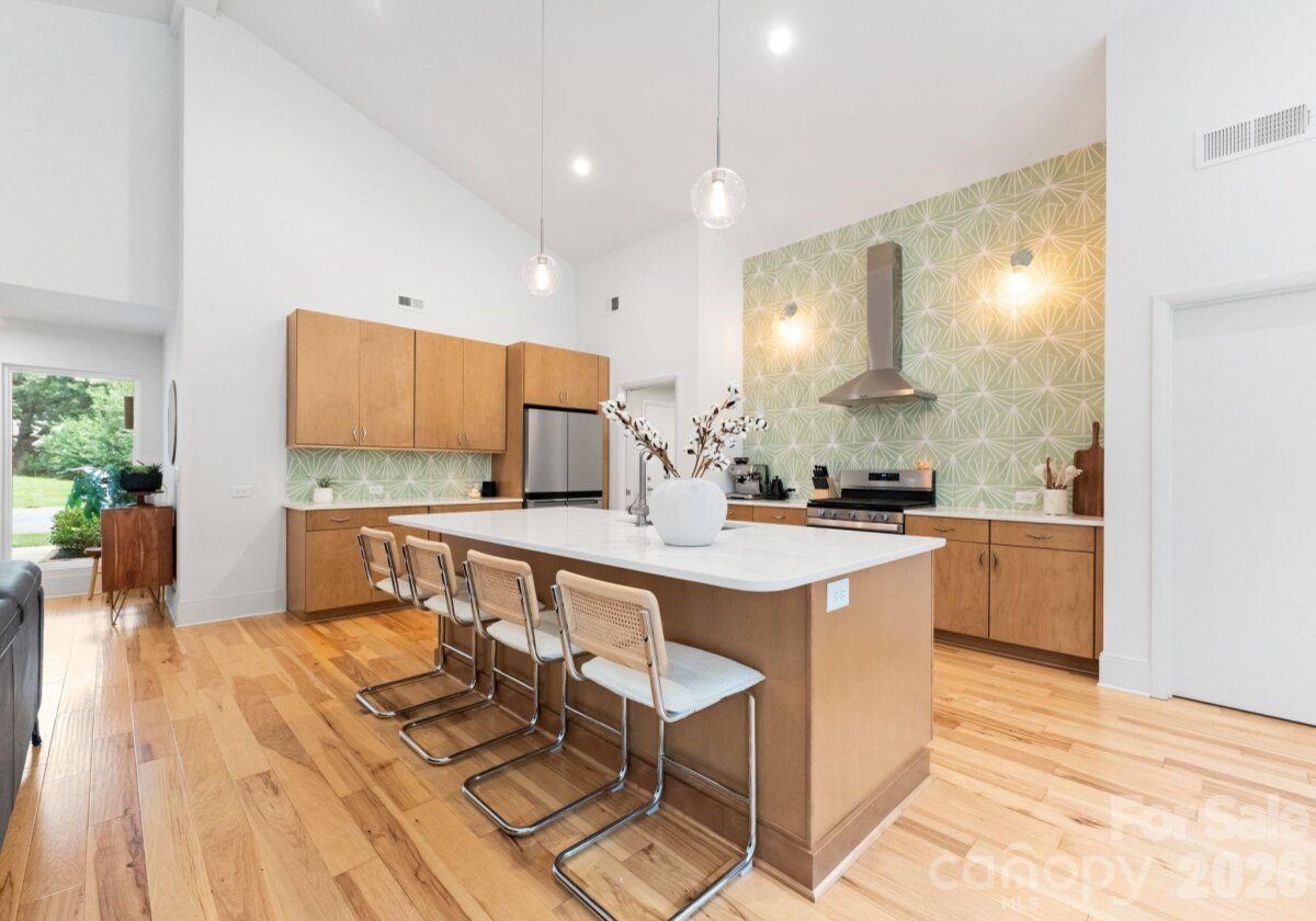 A sophisticated interpretation of Mid-Century Modern design, this exceptional Windsor Park residence offers a seamless balance of architectural style and refined living. Ideally positioned just moments from NoDa, Plaza Midwood, and Uptown Charlotte, the home provides both privacy and effortless access to the city’s most vibrant destinations. Thoughtfully designed to embrace natural light, the interiors are defined by expansive floor-to-ceiling windows and a flowing open-concept layout. The result is a warm, inviting atmosphere that feels both elevated and comfortable. At the center of the home, the kitchen is as functional as it is striking—featuring an oversized island, sleek quartz countertops, premium stainless-steel appliances, and a beautifully curated tile backsplash. It opens gracefully to the surrounding living and dining spaces, creating an ideal setting for both intimate gatherings and larger-scale entertaining. Vaulted ceilings, wide-plank prefinished wood flooring, and designer lighting contribute to the home’s understated sophistication, while a generous walk-in pantry adds convenience to everyday living. The primary suite is designed as a private retreat, offering an expansive walk-in shower and an oversized closet—an environment that prioritizes both comfort and quiet luxury. Seamlessly extending the living space, sliding glass doors lead to a covered veranda overlooking a fully fenced backyard. Complete with a custom fire feature, the outdoor setting invites relaxation and offers endless potential for personalization. Modern conveniences, including a 240-volt EV charging outlet, further enhance the home’s thoughtful design.