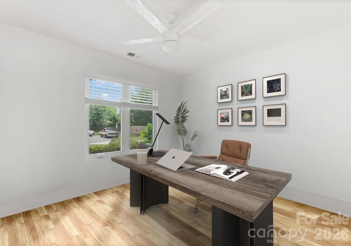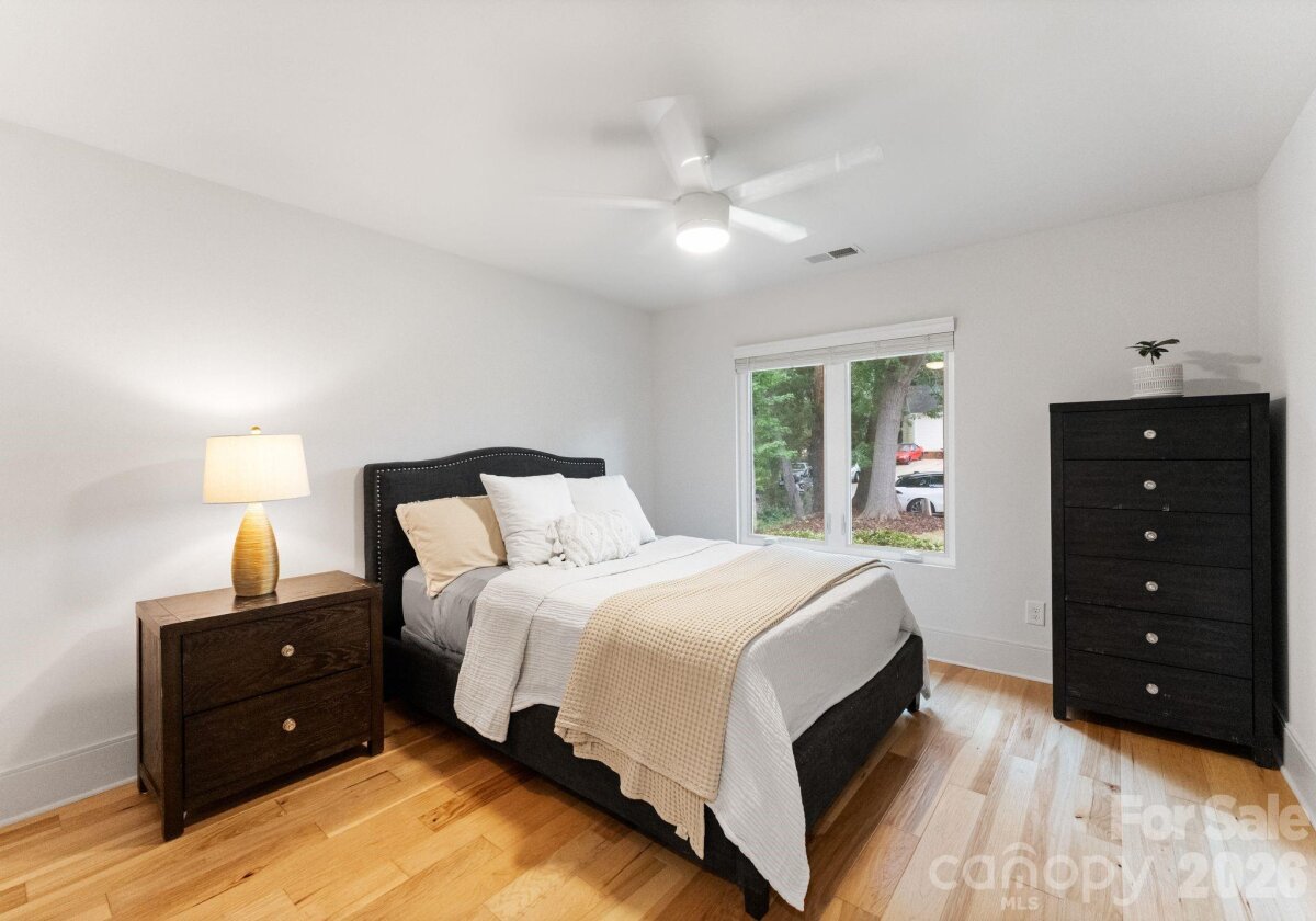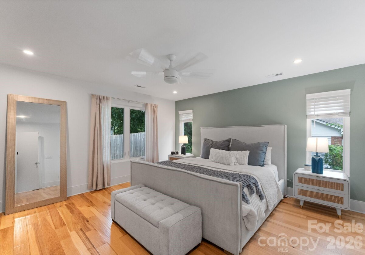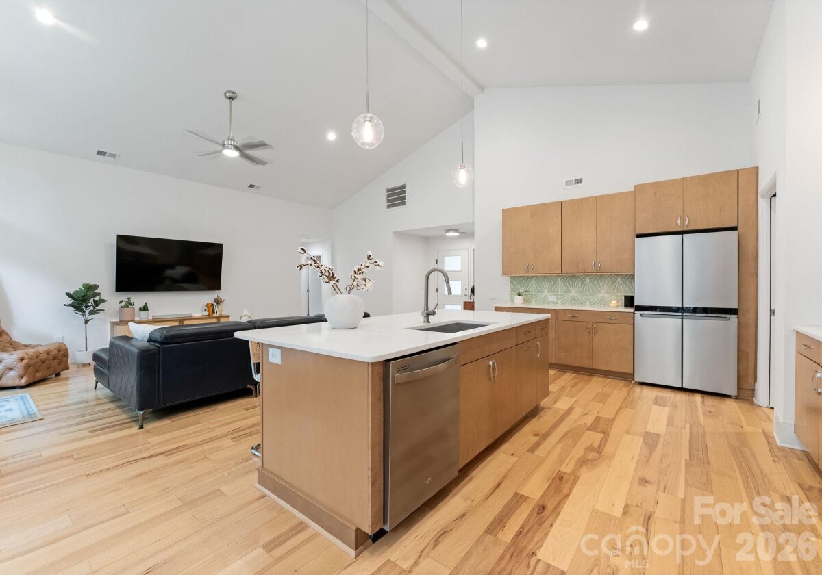 A sophisticated interpretation of Mid-Century Modern design, this exceptional Windsor Park residence offers a seamless balance of architectural style and refined living. Ideally positioned just moments from NoDa, Plaza Midwood, and Uptown Charlotte, the home provides both privacy and effortless access to the city’s most vibrant destinations. Thoughtfully designed to embrace natural light, the interiors are defined by expansive floor-to-ceiling windows and a flowing open-concept layout. The result is a warm, inviting atmosphere that feels both elevated and comfortable. At the center of the home, the kitchen is as functional as it is striking—featuring an oversized island, sleek quartz countertops, premium stainless-steel appliances, and a beautifully curated tile backsplash. It opens gracefully to the surrounding living and dining spaces, creating an ideal setting for both intimate gatherings and larger-scale entertaining. Vaulted ceilings, wide-plank prefinished wood flooring, and designer lighting contribute to the home’s understated sophistication, while a generous walk-in pantry adds convenience to everyday living. The primary suite is designed as a private retreat, offering an expansive walk-in shower and an oversized closet—an environment that prioritizes both comfort and quiet luxury. Seamlessly extending the living space, sliding glass doors lead to a covered veranda overlooking a fully fenced backyard. Complete with a custom fire feature, the outdoor setting invites relaxation and offers endless potential for personalization. Modern conveniences, including a 240-volt EV charging outlet, further enhance the home’s thoughtful design.