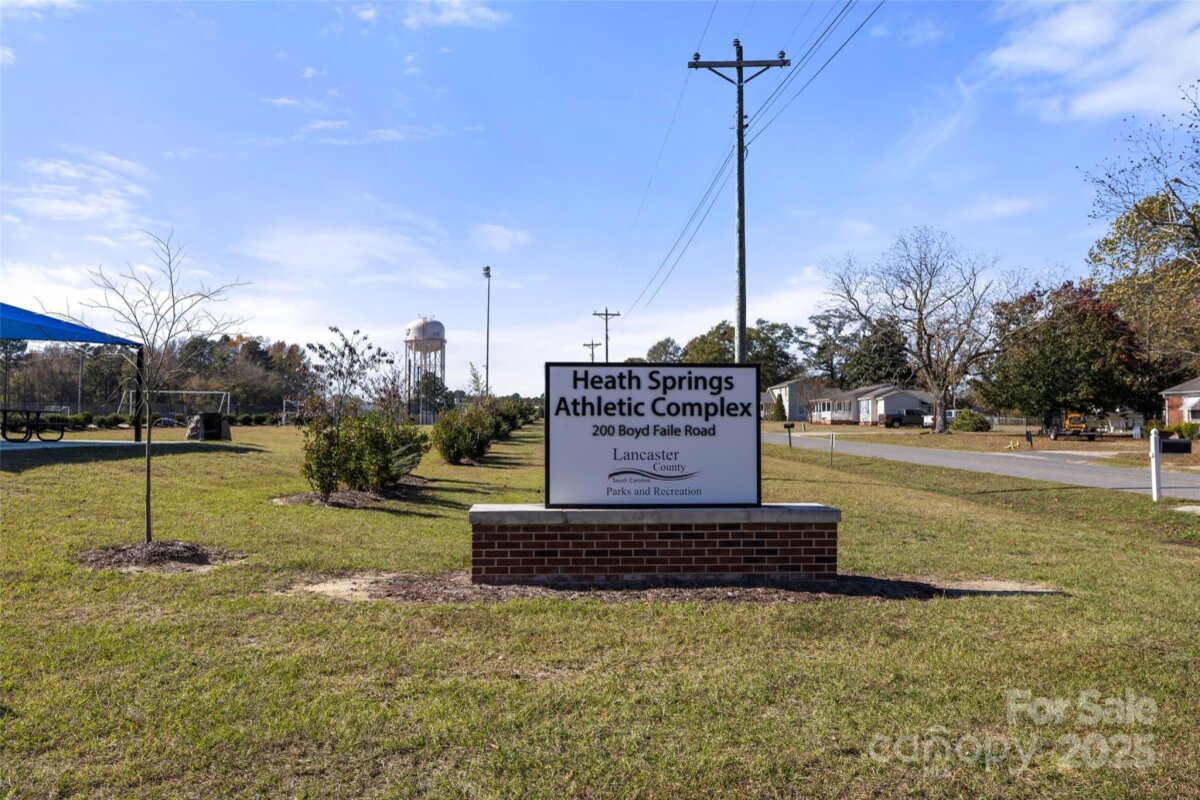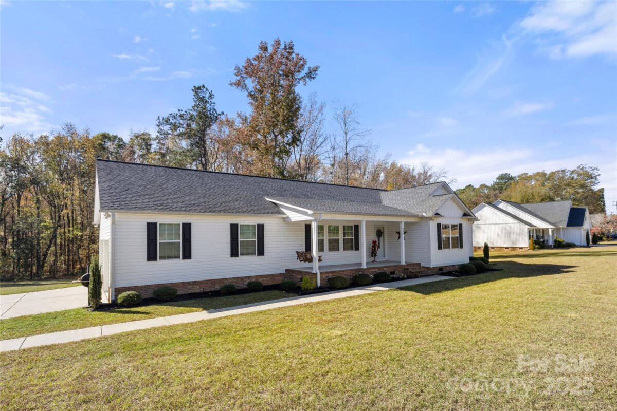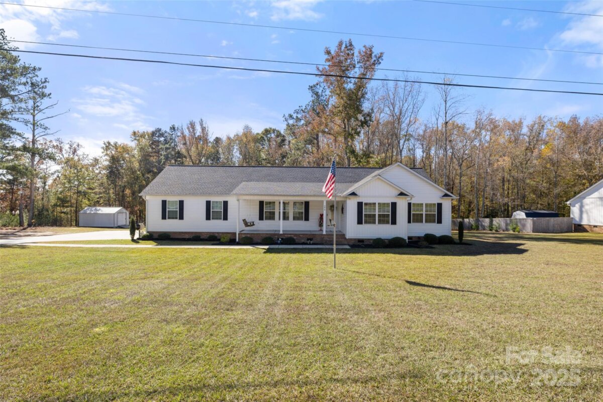 Just down the street from Sunrise Lake and the Heath Springs Recreation Complex, this 2021 build ranch with an open concept and oversized garage is sure to please you. The main floor primary suite offers a massive walk in closet and en-suite bathroom. Custom cabinetry, granite countertops, stainless steel appliances, vinyl plank flooring, cased windows, ceiling fans and over an acre of ground with a 12 by 20 shed, no HOA and no city taxes on the edge of Heath Springs is waiting for you to call it home.