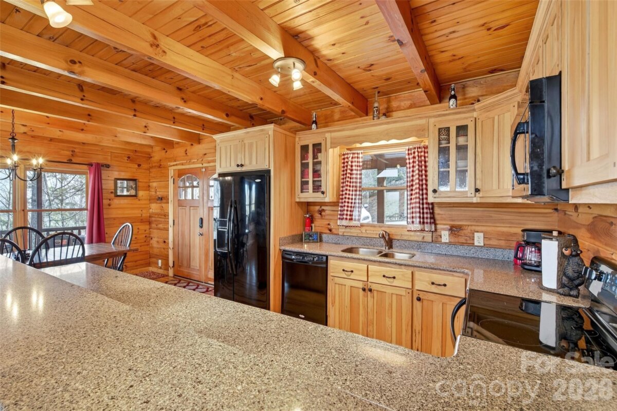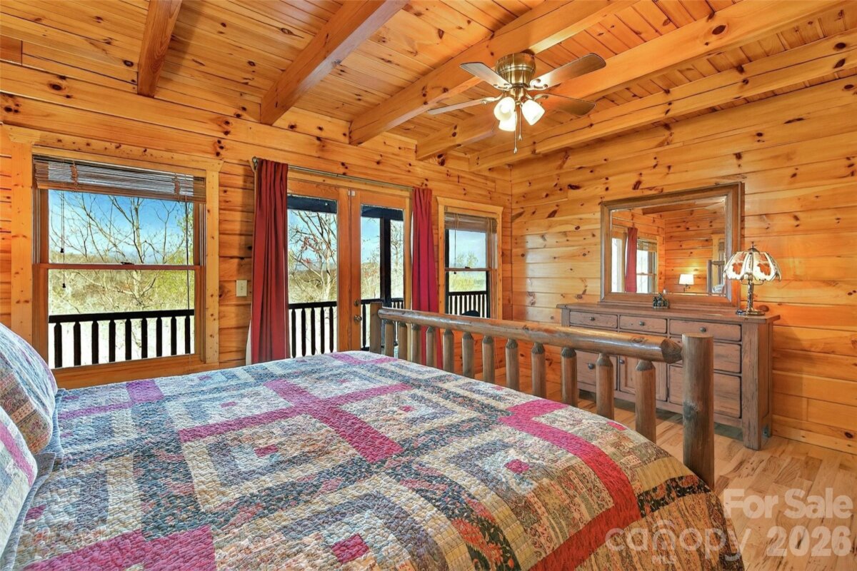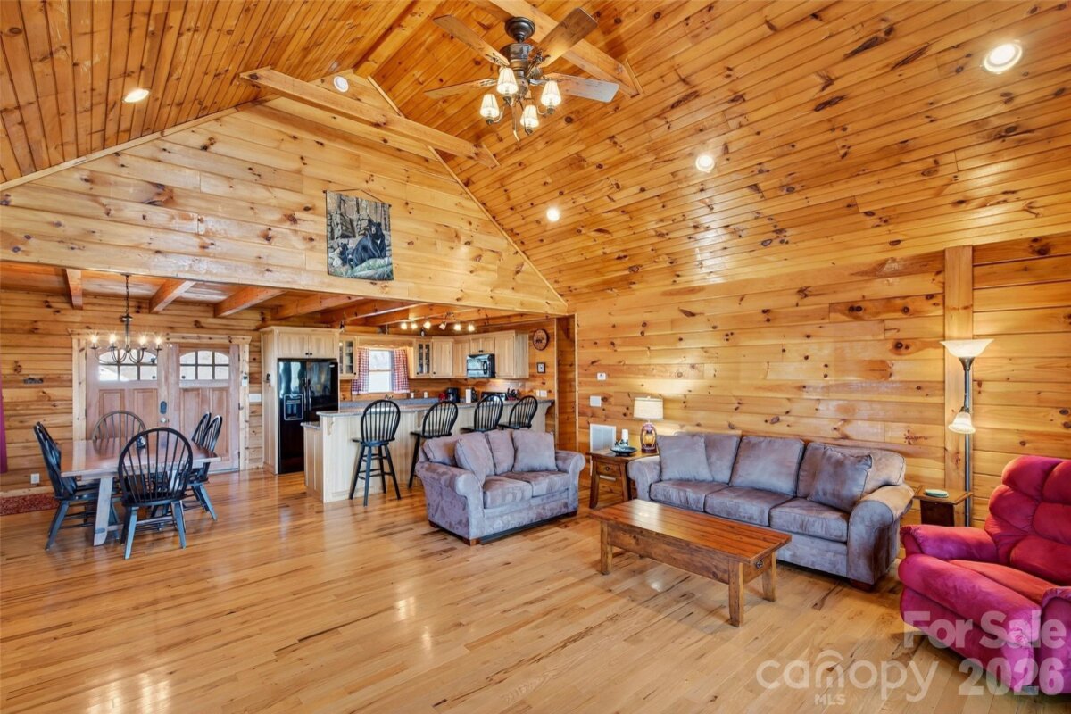 Experience the ultimate Blue Ridge Mountain retreat in the prestigious Views at Woodland Hills. This exceptionally maintained, fully furnished log cabin offers a seamless transition for homeowners or a "ready-to-go" opportunity for short-term rental investors. The main level features soaring vaulted ceilings, custom woodwork, and expansive picture windows that frame year-round mountain vistas. The open-concept living area, anchored by a cozy gas fireplace, flows into a primary suite designed for comfort. The fully finished basement doubles your entertaining space with a second fireplace, full bath, and a versatile bonus room (currently used as a 3rd bedroom). Situated on two combined lots totaling 2.06 acres, you’ll enjoy unparalleled privacy just 15 minutes from the dining and charm of Downtown Marion and a short commute to Asheville.