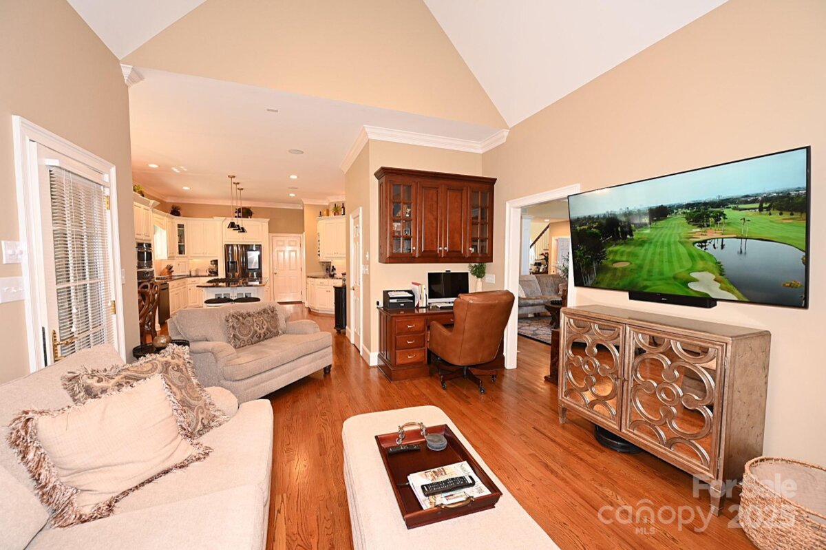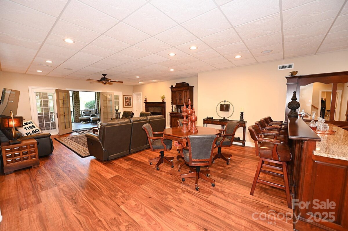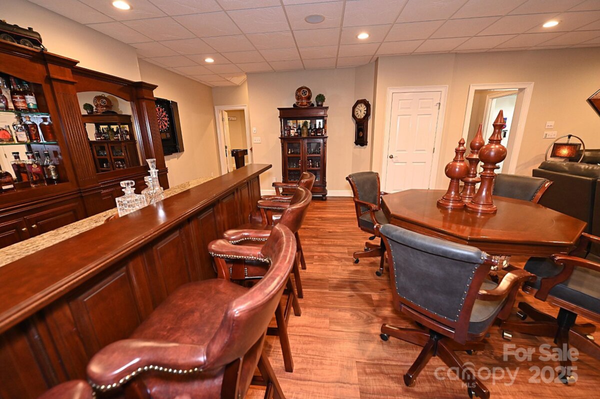 Located in the prestigious Rock Barn Golf and Spa community, this custom-built Stan Whittington home blends timeless sophistication with impeccable craftsmanship. Offering four bedroom/sleeping rooms, a large bonus room, and 4.5 baths. This thoughtful layout begins with a striking two-story foyer that sets the tone for the elegance throughout. The main level features a beautiful bright kitchen with adjacent family room and fireplace, a large living room with an additional fireplace and dining room in an open setting. The main level's luxurious primary suite offers dual vanities, large walk-in shower, large soaking tub and a massive walk-in closet. The upper level highlights two ensuites and large bonus room, ideal for guests or additional sleeping rooms. The finished basement is designed for entertaining, complete with a full bar, lounge area and an additional guest suite. Outdoor living is a highlight, with multiple patios, screened areas and terraces overlooking the beautifully updated landscaping that creates a serene, park-like atmosphere. Despite its private setting, tucked just behind the 18th hole of the private Robert Trent Jones course, the home is just a short walk or golf cart ride from Rock Barn's world-class golf courses, resturants and spa amenities. Additional features include a game room, 3 car garage and Tons of storage with built in shelving! Membership to Rock Barn Golf & Spa is attainable. Membership includes 36 Holes of Championship Golf across 2 Challenging Courses. Member access and pricing at the 20,000 square foot European day spa and café. Eight court tennis complex with four hydro (clay) courts and four hard courts as well as pickleball courts. Members only fitness center with access to personal training and complimentary classes. Upscale locker rooms with lounge, steam rooms, and saunas. Olympic-size pool complex and exclusive aquatic fitness classes. Elegant 24,000 square foot Clubhouse with casual and fine-dining options and 7 private Dining, Meeting and Event Spaces with discounted room rental for Members. Seasonal casual dining at our golf course or pool complex cafés featuring Live entertainment, dining, and social events. Contact membership at Rock Barn for pricing information.