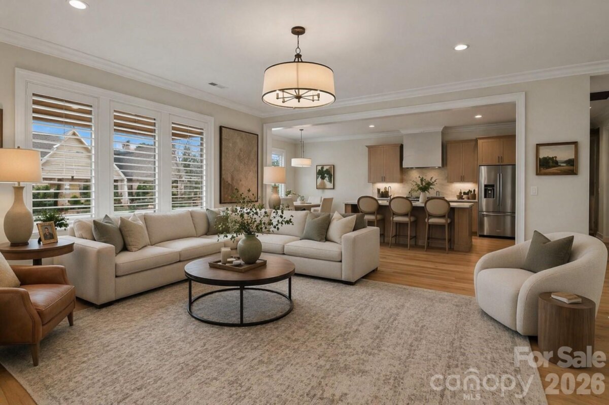 Set on a private, flat .75-acre homesite, this custom-built organic modern craftsman offers a rare combination of thoughtful design, elevated finishes, and everyday livability, all within easy reach of Lake Norman and Charlotte. From the moment you arrive, the home is intentionally positioned to create a sense of quiet separation. A gently curving walkway leads from the driveway to the front porch, guiding you through a professionally designed landscape that feels established, yet understated. The architecture blends clean lines with natural materials, dark siding, stone accents, and layered rooflines, creating a look that is both current and timeless. Inside, the home opens into a light-filled, open-concept layout defined by 10-foot ceilings and a natural flow between spaces. The great room, kitchen, and dining areas connect seamlessly, creating an environment that feels equally suited for everyday living and entertaining. At the center of the home, the kitchen is designed to perform as beautifully as it presents. An oversized 8-foot island anchors the space, offering both functionality and a natural gathering point. Outfitted with KitchenAid appliances, gas cooking, and designer finishes, it delivers a level of quality expected at this price point while maintaining a warm, approachable feel. Sightlines extend from the kitchen into the great room and out toward the rear of the property, reinforcing the home’s connection to its setting. Privately positioned, the primary suite is designed as a true retreat. Tucked toward the rear of the home, it offers both separation and convenience. The en-suite bath is thoughtfully laid out with a large walk-in shower, a freestanding soaking tub, and a spacious walk-in closet, creating a space that feels both functional and restorative. Three additional bedrooms provide flexibility for guests, family, or a dedicated office, with a layout that prioritizes privacy without sacrificing accessibility. Where this home truly sets itself apart is in its outdoor living. The rear elevation is intentionally designed as a clean, continuous plane, allowing the covered porch, positioned to one side, to feel like a purposeful extension rather than an afterthought. From there, the space flows naturally into an expansive paver patio, creating multiple zones for dining, lounging, and entertaining. With a flat, usable backyard and ample room for future additions such as a pool, the setting offers both immediate enjoyment and long-term potential. The side-load garage is strategically positioned to maintain the integrity of the front elevation, allowing the home to present as a custom residence rather than a production build, an important distinction in both perception and long-term value. This is a proposed custom build, offering buyers the unique opportunity to personalize select finishes and design elements to reflect their individual style and preferences, creating a home that feels truly their own from the very beginning. Built with a high-end approach to both design and construction, this home offers a level of finish, layout efficiency, and architectural intention that is increasingly difficult to find at this price point. This is more than just new construction, it is an opportunity to shape a home around your lifestyle while benefiting from a thoughtfully designed plan and a proven vision.