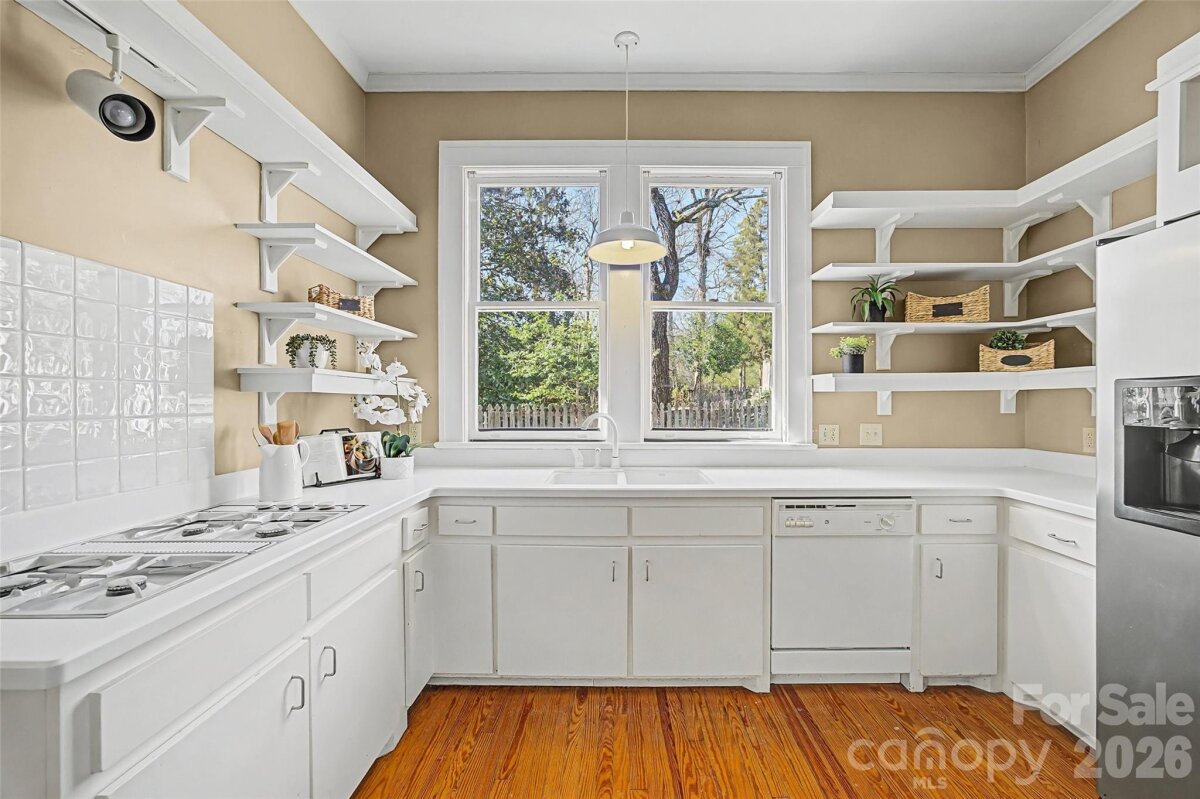 Step inside this timeless two-story brick home in the heart of the Historic District of York, SC, located on one of the most charming streets in York County and just a short walk to downtown York’s shops, dining, and community events. A classic rocking chair front porch sets the tone, welcoming you into grand, high-ceilinged rooms with original hardwood floors and beautiful built-ins that showcase the home’s character and Southern charm. Fresh interior paint brightens the living spaces, while fresh landscaping enhances the curb appeal, blending historic beauty with thoughtful updates. The formal dining room is ideal for gatherings, and the sunroom offers a bright retreat for morning coffee or afternoon reading. A mudroom adds everyday functionality without sacrificing historic style. Out back, a rare find for a historic York home, a detached two-story garage offers incredible flexibility. The main level provides parking and storage, while the upstairs bonus space is perfect for a guest suite, art studio, or home office. With its blend of historic charm, spacious interiors, fresh updates, and walkable location in Historic York, South Carolina, this home is ready for its next chapter.
