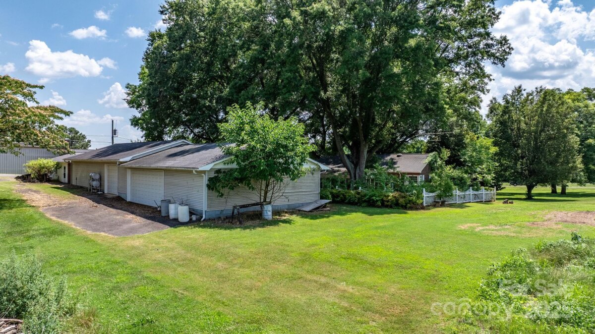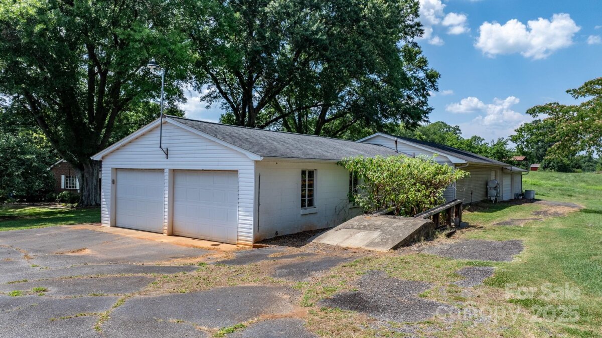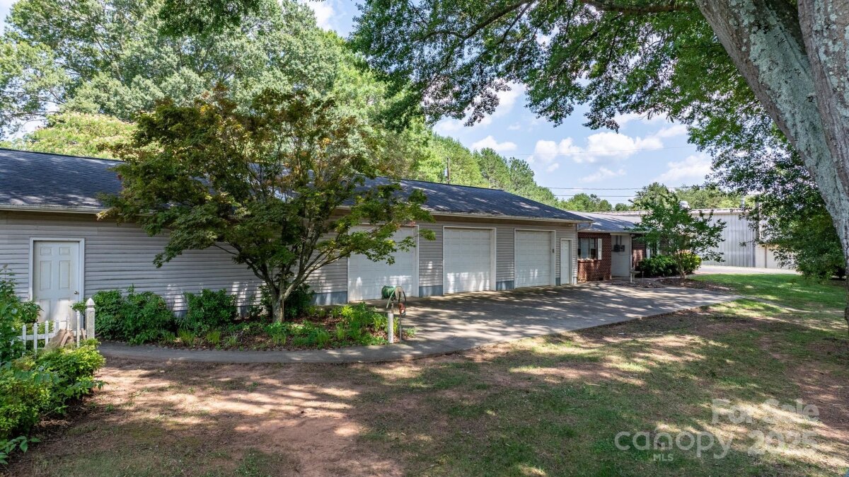 A truly unique property! All-brick ranch in Granite Falls situated on over 1.4 acres with mature landscaping and 250+ ft of road frontage on Hwy 321. This 3 bed, 3 bath home features a spacious layout with original hardwood floors, full unfinished basement, and two large enclosed porches/sunrooms with gas heaters for year-round enjoyment. A standout feature is the detached garage/workshop offering over 3,500 sq ft, including 9 garage bays and a half bath—perfect for auto work, storage, or a variety of business uses. Also included is a fully equipped beauty salon with its own half bath, ideal for a stylist or beautician looking to work from home. Zoned Highway Business, this property offers incredible flexibility for residential, commercial, or mixed use. With prime visibility and endless potential, this is a rare opportunity you don’t want to miss!