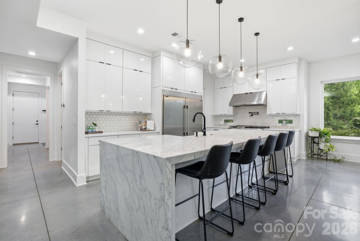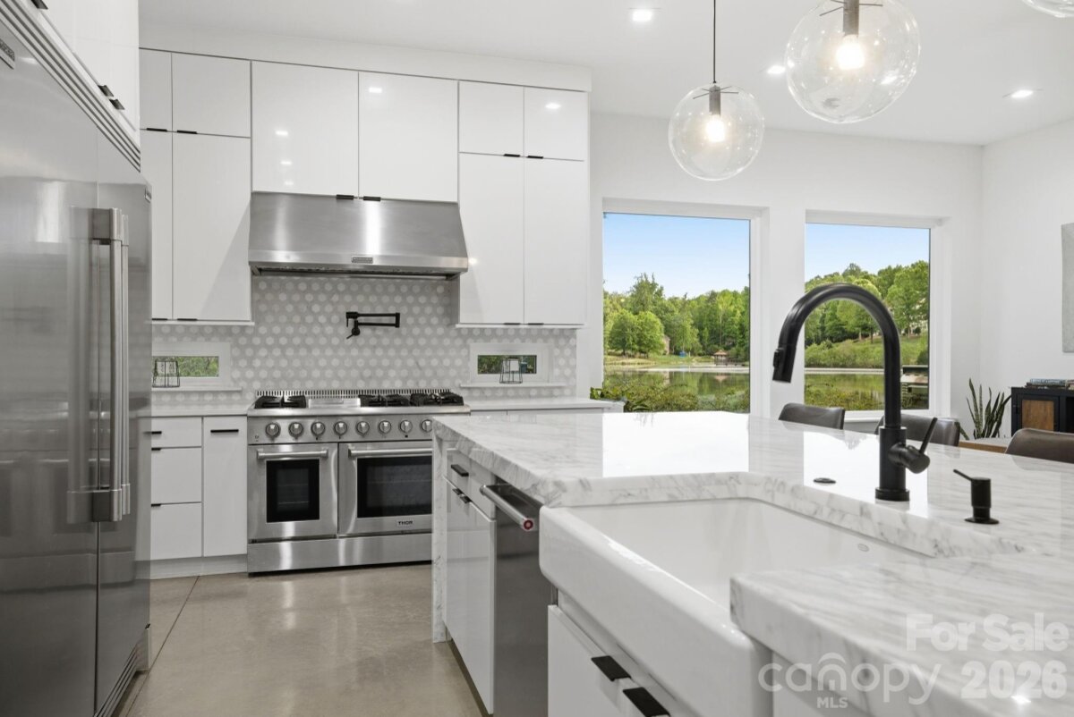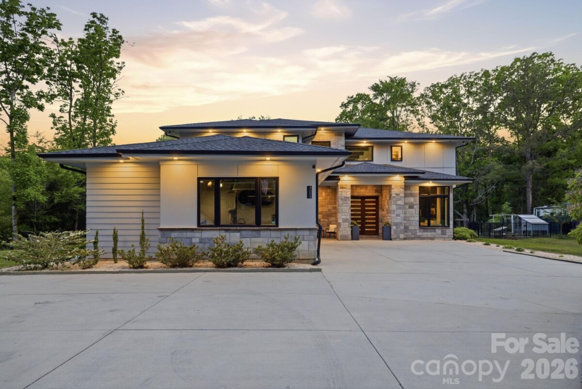There are homes… and then there are experiences. Tucked beyond a long, winding driveway and set on nearly two private acres, this striking contemporary estate unfolds like a private retreat—where architecture, nature, and tranquility exist in perfect harmony. Overlooking a peaceful lake and surrounded by mature trees, every inch of this property was designed to slow you down, draw you in, and create a true sense of escape from the everyday. From the moment you arrive, the setting makes an impression. The long, scenic approach builds anticipation, guiding you through a natural landscape that feels worlds away from the pace of daily life. As the home reveals itself, its bold, modern design stands in perfect contrast to the softness of the surrounding environment—clean lines, expansive glass, and a seamless connection to the outdoors. Inside, the experience only deepens. A dramatic wall of floor-to-ceiling windows stretches across the rear of the home, flooding the interior with natural light while framing uninterrupted views of the lake, sky, and trees beyond. The changing light throughout the day transforms the living space into something dynamic and ever-evolving—sunrises reflected on the water, golden hour glowing through the trees, and peaceful evenings wrapped in stillness. Concrete floors add a sleek, modern foundation, grounding the space with understated sophistication while allowing the natural beauty outside to remain the focal point. The open-concept design creates an effortless flow between living, dining, and kitchen spaces—perfect for both quiet moments and larger gatherings. At the heart of the home, the kitchen is both functional art and a true gathering place. Outfitted with marble countertops, a premium Thor gas range, and thoughtfully curated finishes, it offers the perfect blend of performance and design. Whether you’re preparing a simple meal or hosting an evening with friends, this space was built to elevate every experience. Yet as stunning as the interior is, the outdoor living is where this home truly comes alive. Step onto the covered back porch, where an outdoor fireplace creates a warm, inviting atmosphere year-round. This becomes an extension of the home itself—a place for slow mornings with coffee, relaxed afternoons in the shade, and evenings filled with conversation and connection. Just beyond, the mineralwater hybrid in-ground pool offers a private resort-like setting, surrounded by natural beauty and complete privacy. With nearly two acres of land and mature trees creating a peaceful buffer, the property feels secluded, intimate, and entirely your own. The lake provides a constant sense of calm—its presence shaping the rhythm of daily life in subtle but meaningful ways. It’s the kind of setting that encourages you to pause, to breathe, and to truly enjoy where you are. Inside, five bedrooms and three and a half baths provide flexibility and space for a variety of lifestyles—whether accommodating family, guests, or the need for dedicated work or creative spaces. Despite its size, the home maintains a sense of warmth and balance, never losing its connection to comfort and livability. This is more than just a home—it’s a place designed for living differently. A place where modern design meets natural beauty, where privacy and luxury coexist, and where every detail contributes to a feeling you won’t find anywhere else. A rare opportunity to own a truly one-of-a-kind contemporary retreat in Waxhaw—just minutes from local charm, yet a world away in every other sense.
