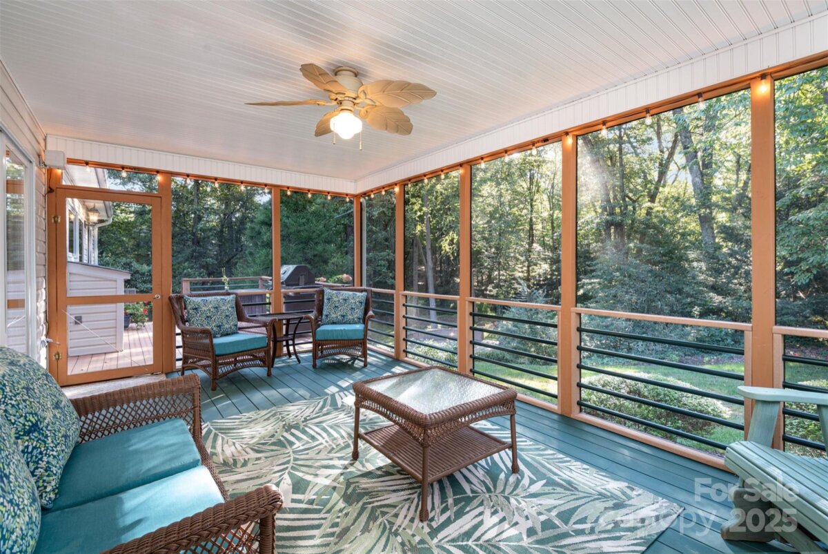Lovely Catawba Springs home with so many special features, it's hard to know which one you will love more. Before you enter, sit in the southern front porch swing and admire your view of Catawba Springs golf course past your lush landscaping. A warm library-office greets you off the foyer with marvelous custom wood shelving. The vaulted great room with gas fireplace and wall of windows provides expansive living space. Formal dining and breakfast rooms flow seamlessly from the updated chef's kitchen. Stainless appliances, thick granite, designer sink, under counter lighting, and 2 full walls of cabinets and counters make this an inviting space to cook and gather. The private owner's suite offers a peaceful view of the backyard, plus an oversize standing shower, dual sink vanity and 2 closets. Upstairs there are two huge bedrooms, each with 2 closets and a lovely Cape Cod window space. The upstairs bath includes a true full size soaking tub. Your oasis backyard is highlighted by the 20 x 12 screen porch, adjacent 16 x 12 deck, natural gas grill hook up, oversized fire pit stone seating area, and babbling creek. Don't miss the conditioned crawl space with amazing storage and wine cabinet for your special bottles. Even the garage is special with over 500 square feet for parking and a 24 x 12 workshop behind with wall heater. We hope you love it all and decide to make this home yours.