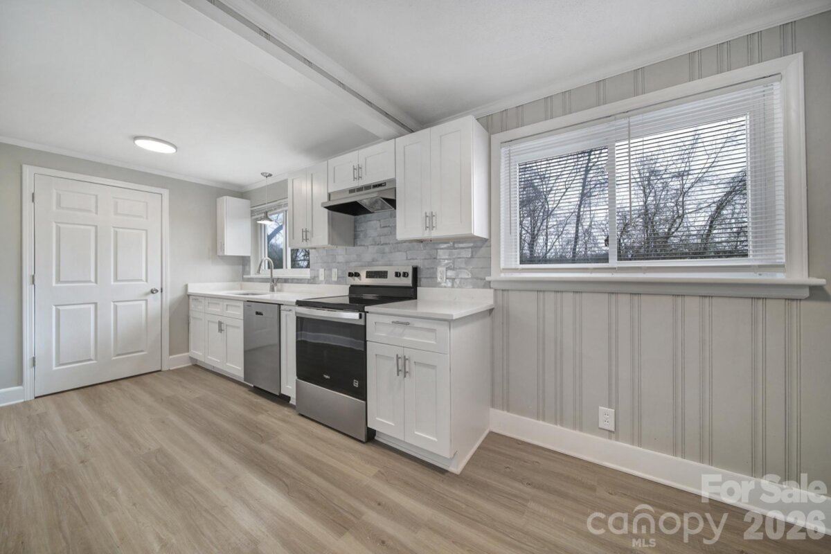 This solid 3-bedroom, 2-bath home has been updated and is ready for it's new owner. The living room has space to spread out plus a wood-burning fireplace for a cozy evening in. The kitchen features brand new stainless appliances, new cabinets, subway tiles backsplash and quartz countertops, and a walk in pantry and separate laundry room. The primary bedroom with ensuite features a custom subway tile walk-in shower, new vanity, toilet, and fixtures. Brand new LVP runs throughout the main areas and both bathrooms, with new carpet in all 3 bedrooms. The hallway bathroom has also been completely revamped with a subway tile tub surround, new vanity, fixtures and toilet. Also new paint inside AND outside, giving the house curb appeal on the outside and a fresh, crisp vibe on the inside. The roof was also replaced in 2025 along with the exterior doors, light fixtures, and most of the plumbing pipes have been converted to pex. Out back, you’ve got a large yard with room to play, grill, or let the dog run. The location is very desirable and perfectly situated with quick access to I-85, just 5 miles to Uptown Charlotte, NoDa & Plaza Midwood, and just 6 miles to the airport. Don't let this one get away!