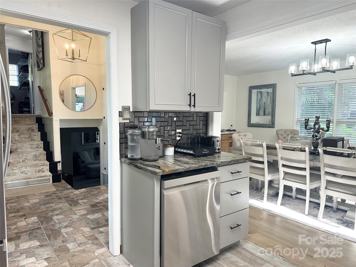 If you are looking for a beautiful newly remodeled from top to bottom brick home in a quiet cozy friendly neighborhood with lots of concreted parking, large yard, 17ft by 17ft 3in workshop and a community pool, this is it!!! This is a unique split-level floorplan with 3 bedrooms on upper level, open kitchen concept (enough room for small island if you wish) with all new custom cabinets, LG stainless steel appliances including DOUBLE OVEN, glass backsplash, and huge dining room with lots of lighting, buffet serving table for all major holiday/entertainment on main level. A large living room with cozy brick fireplace and entertainment center. A large laundry room with lots of storage (almost size of a small room) and a half bath on lower level. A new 2025 roof, tile flooring, carpet, light fixtures, vanities, and the list goes on! Enjoy the outdoors with a large palm that lights up at night, large deck for get togethers, woods across the street for lots of privacy! Shading from the beautiful oak trees, flowers and plants, large workshop/man cave with the addition to be finished prior to closing. Huge parking area for those with trailers, boats, toys etc... This is honestly a retreat with all the beautiful landscaping, views, basketball goal and more. Just minutes away from Spencer's famous Train Museum, downtown Salisbury shopping, brand new sheetz gas station off exit 79. Also, just minutes away from Hwy 85 and only 37 min to downtown Charlotte.