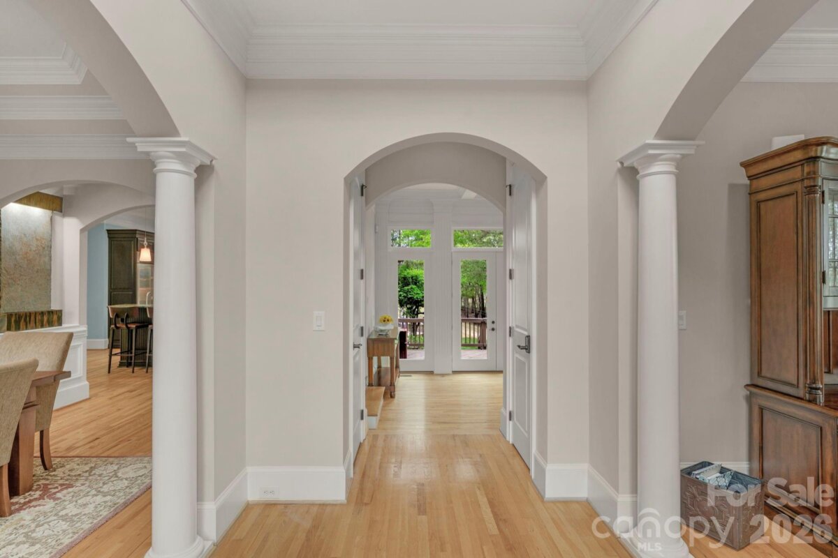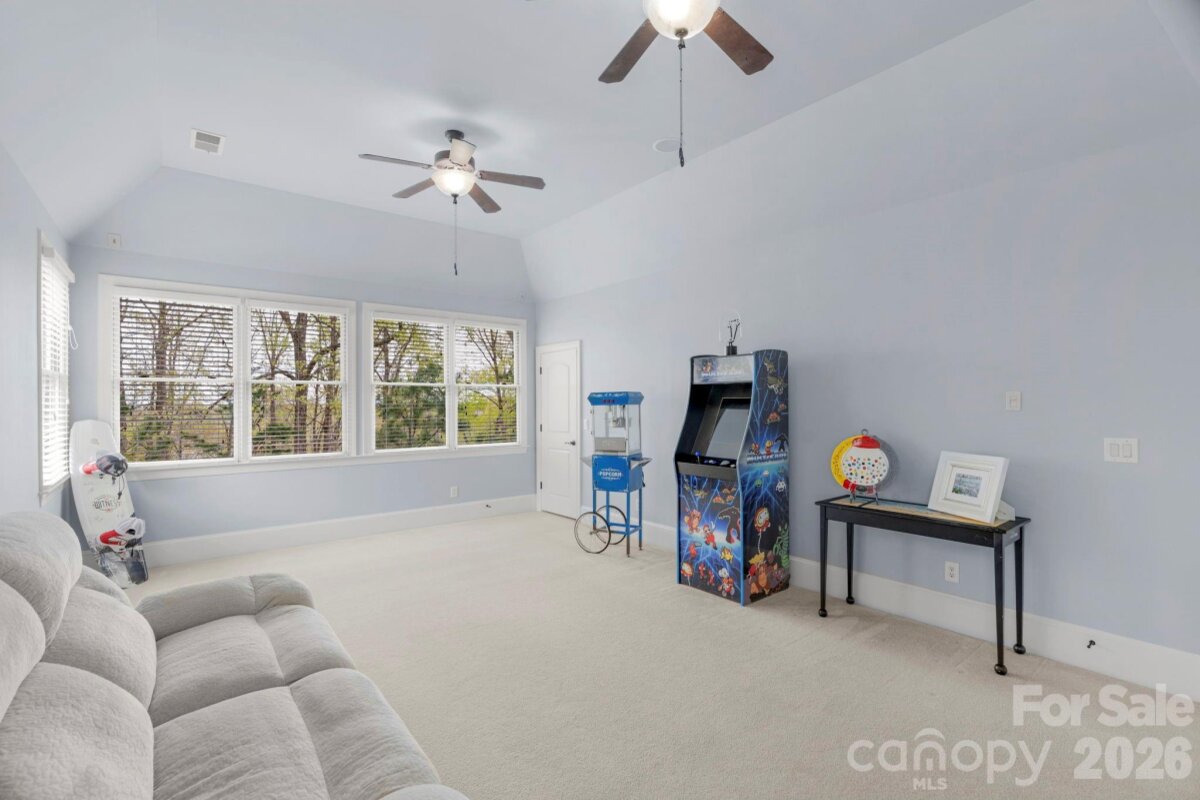 Welcome to 4017 Beechwood Spring Lane, a stunning two-story estate perched at the highest point of the prestigious gated community of Reflection Pointe. This 4-bedroom home sits on a sprawling 1.14-acre lot, offering rare lake views from both the front and the expansive, fenced backyard. The grounds provide a perfect canvas for a growing family, featuring a large, level lawn with ample space for a future in-ground pool. From the moment you enter the two-story foyer, the home impresses with elegant details and modern conveniences, including a comprehensive whole-home speaker system that sets the mood for every room. The main level flows effortlessly from the formal dining room with tiered ceilings and French doors to a sun-drenched study that captures tranquil water views. The heart of the home is a magnificent chef’s kitchen designed for high-end entertaining and integrated audio. Two massive granite-topped islands anchor the space: one serves as a social hub with a breakfast bar, beverage refrigerator, and ice maker, while the second functions as a professional prep station equipped with dual Miele dishwashers. The appliance suite is a culinary dream, featuring a SubZero refrigerator, a Wolf 6-burner dual-oven range, a built-in Miele coffee system, and a built-in kegerator. This culinary center flows seamlessly into a bright family room anchored by a stone gas fireplace, while a step-down great room with coffered ceilings offers even more space to gather. For a more intimate setting, the enclosed screened porch features teak hardwood floors and its own stone fireplace, perfect for relaxing to your favorite music in the fresh air. The upper level is thoughtfully designed for comfort and recreation, highlighted by a large bonus room with surround sound and lake views. The primary suite serves as a true sanctuary, boasting double-tier ceilings with extensive molding, a private sitting room, and a spa-like bath with split granite vanities and a soaking tub. A versatile flex room located off the primary bath provides the perfect space for a nursery, gym, or secondary office. Outdoor living is equally impressive, centered around a large brick paver patio with a dedicated grilling station and a stone fireplace featuring a built-in pizza oven. Completing this luxury lifestyle is a deeded 30’ boat slip with a lift at the community marina, offering immediate access to the water. You will also enjoy the exceptional community amenities of Reflection Pointe.
