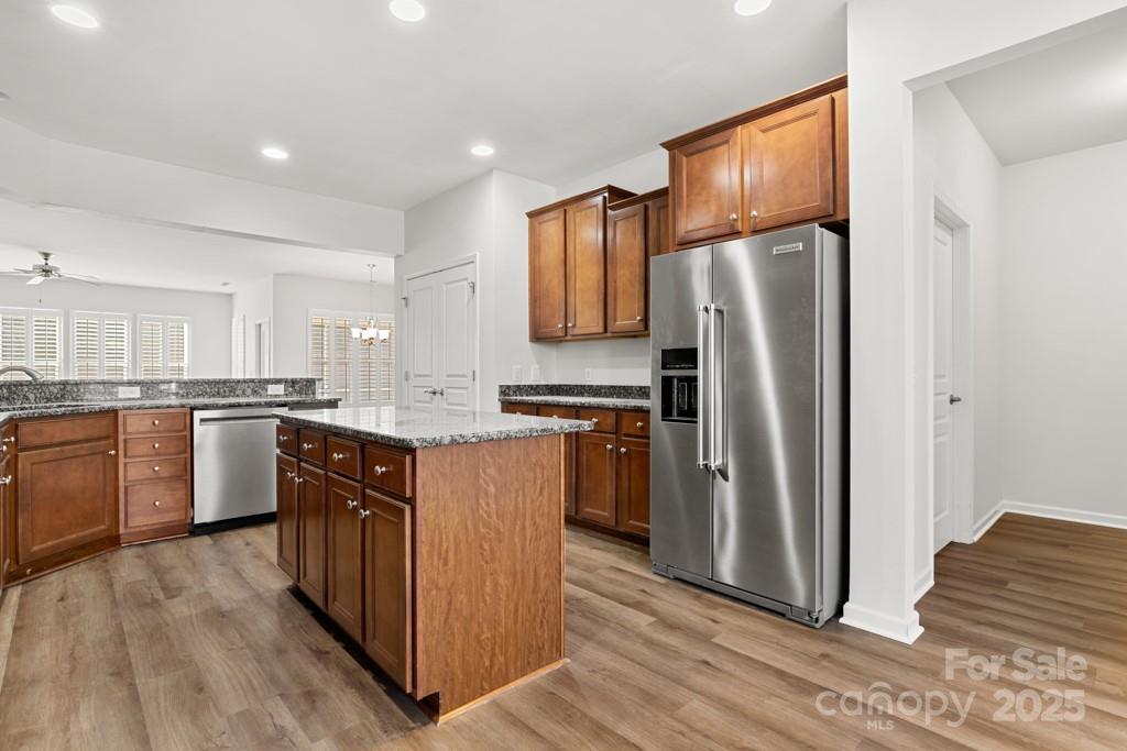 Popular Cumberland Hall floorplan in highly sought-after Sun City Carolina Lakes! This 3-bedroom, 2.5-bath home features a split-bedroom layout with a private office just off large welcoming foyer. The gourmet kitchen boasts rich wood cabinetry, granite countertops, stainless steel appliances, wall oven, microwave, pantry, and a charming bay-window dining area with 2" blinds. Brand new Shaw LVP flooring just installed in foyer, office, great room, kitchen, breakfast, dining room, guest bath, 1/2 bath & laundry room. Brand new carpeting in all three bedrooms. The oversized great room with ceiling fan & plantation shutters flows seamlessly into the formal dining space and a sun-filled screened porch. The primary suite offers ceiling fan, a large walk-in closet with custom built-ins, dual vanities, garden tub and walk-in shower. Spacious secondary bedrooms with ceiling fans share a full bath with dual sinks. Convenient drop zone area and mud room/laundry room area. Outdoor living boasts a screened porch with stamped concrete flooring & side patio for grilling. The oversized two-car garage provides ample storage and room for a golf cart. Seller willing to leave their 2013 golf cart for new homeowner(s)! HVAC replaced in April 2022. Six zone irrigation which includes one drip zone. Brand new water heater and garbage disposal. Homeowner maintains annual termite bond, bi-annual HVAC maintenance and regular pest prevention. Enjoy the privacy, natural setting, and resort-style amenities Sun City is known for: Golf, walking trails, swimming, kayaking, softball, woodworking shop, dog park, tennis, pickleball, gardening, pottery and countless opportunities for an active lifestyle!