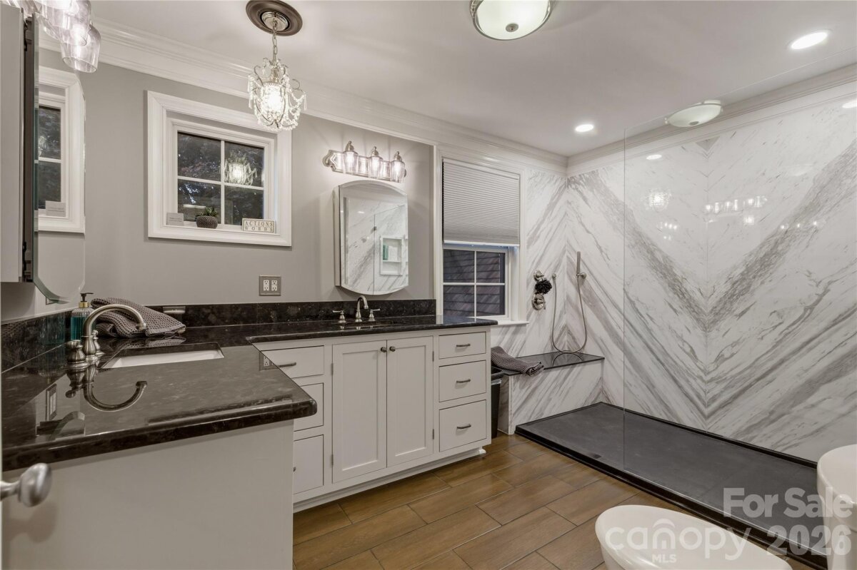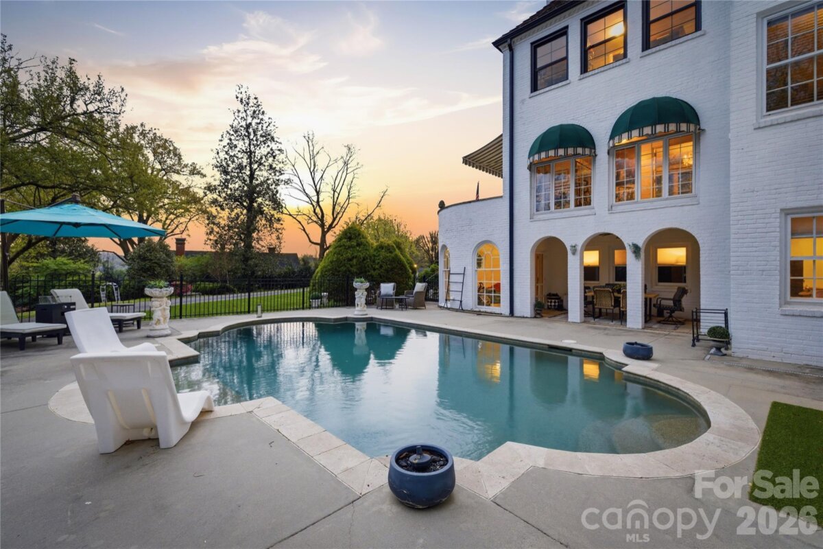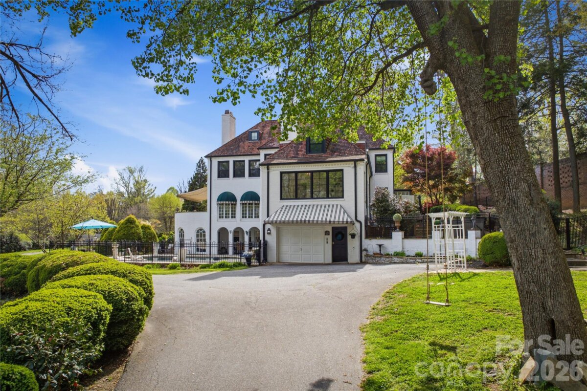 Discover this stunning home, a premier example of French Eclectic architecture, nestled on over 3 acres of pure privacy just outside downtown Lenoir. Conveniently located right off Highway 321, this property offers the perfect blend of tranquility and accessibility, with breathtaking views of Hibriten Mountain providing a serene backdrop for your own private oasis. Step outside to find a gorgeous gunite pool, framed by elegant black iron fencing, ideal for both relaxation and entertaining. The property features a detached garage with four doors, accommodating multiple vehicles or offering ample storage space, along with a charming barn that adds character to the estate. Mature landscaping enhances the beauty of the grounds, showcasing large yellow magnolia trees, a striking Camellia tree, and over 15 different tree species thoughtfully planted throughout the property. Inside, the home boasts a brand new bathroom that is nothing short of a spa retreat, featuring a spacious walk in shower adorned with exquisite Volakas Marble and an onyx pan. The interior also features new Pella Impervia windows, enhancing energy efficiency and aesthetic appeal. Several of the heat pumps are newer, ensuring comfort throughout seasons. The expansive basement offers a full kitchen and a dedicated movie theater, making it and ideal space for entertaining family and friends. The architectural significance of this home is recognized in the NC State Northrip & O'Brien architectural records, reflecting its historical and aesthetic value. This property is not just a home, it's a lifestyle offering privacy, luxury, and distinctive charm. Most furnishings are negotiable, hot tub conveys with property. Don't miss the opportunity to own a piece of architectural history in a serene setting!