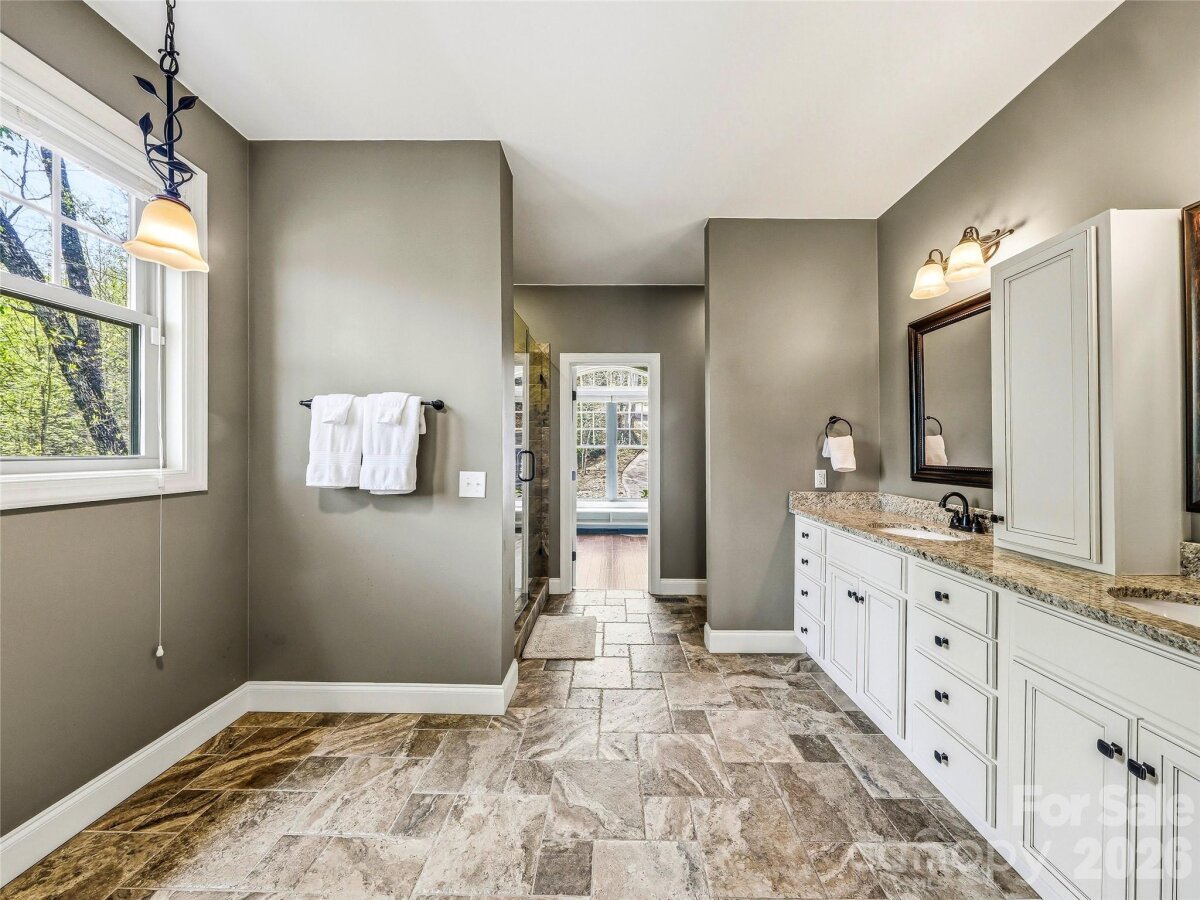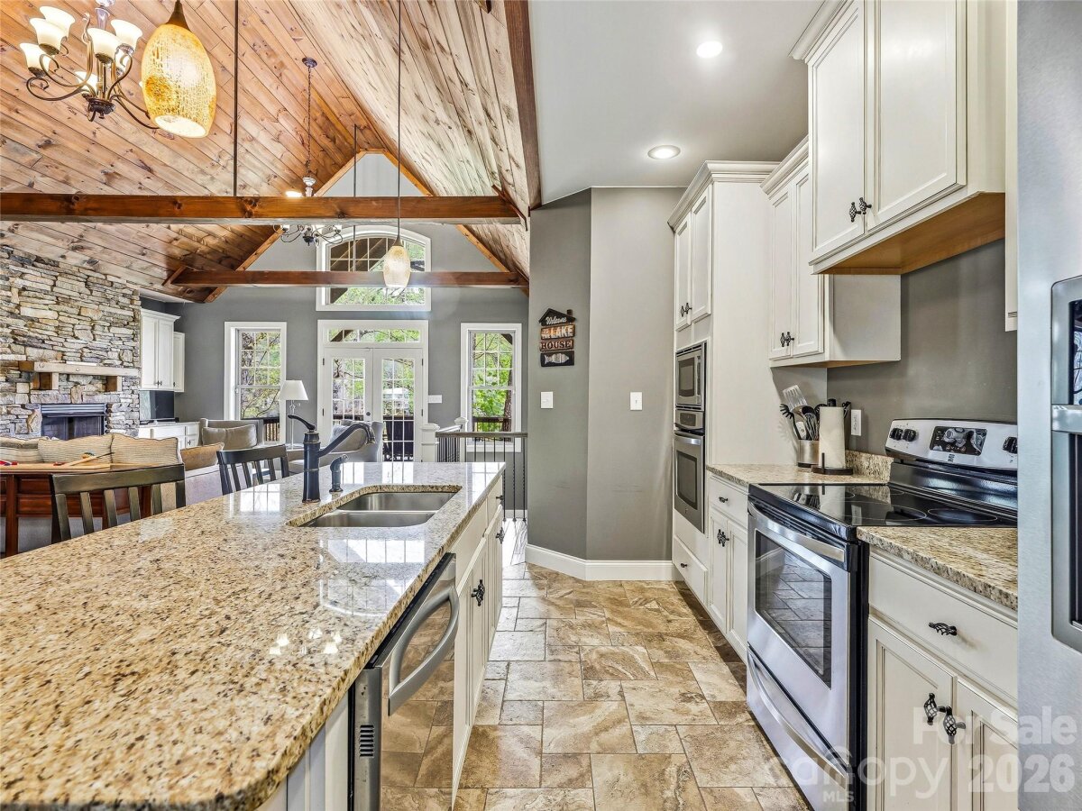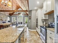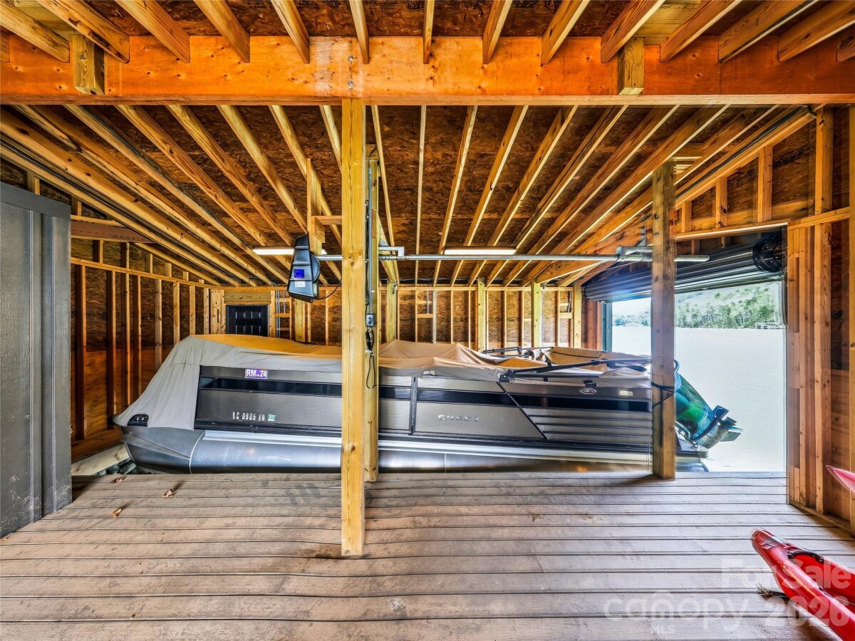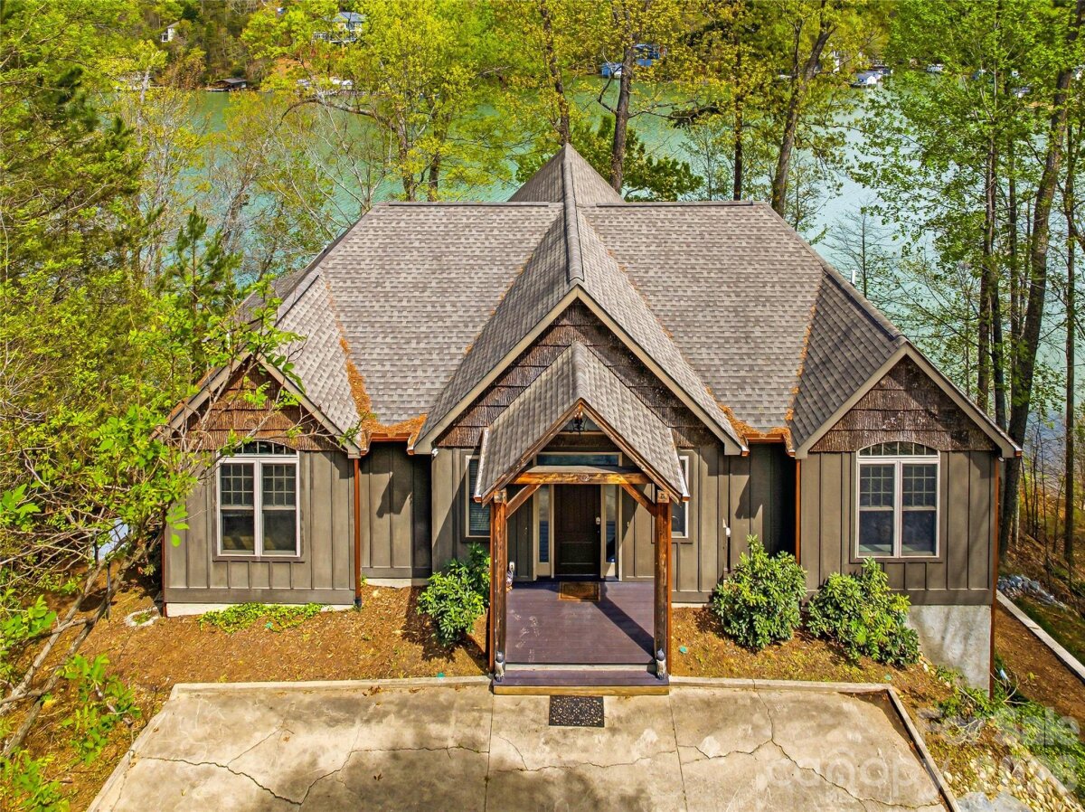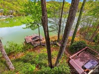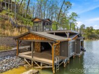 Builder’s custom lakefront double lot retreat, showcasing mountain elegance in a private setting. Located on a deep water main channel in the Gated Community of Blue Heron Point on Lake Lure. Privacy abounds on this rare double lot with over 200 feet of shoreline. This property features a private beach, and an exceptional new boathouse with party deck above. Inside, the home is rich with warm wood finishes and thoughtful details, including post-and-timber exposed beams, tongue-and-groove cathedral ceilings, granite countertops, stainless steel appliances, and a striking stone fireplace. The split-bedroom floor plan enhances privacy, while double covered lakeside decks provide stunning views from multiple vantage points. The main level of the home offers an open-concept design connecting the living, dining, and kitchen areas—perfect for gathering and entertaining. The spacious primary suite, complete with a large private bath and walk-in closet, is thoughtfully positioned for privacy, while two guest bedrooms with a Jack-and-Jill bath are located on the opposite side of the home. The lower level expands your living space with a generous family room, full bath, bunk room, and game room, all opening to the lakeside mountain views and deck. Two additional unfinished rooms currently used for game room and storage provide excellent potential for expansion—ideal for a home office or additional bedrooms. Step outside to enjoy true lakefront living. The lower deck leads directly to the hot tub area then down to the boathouse and waterfront, where you can swim, fish, or relax on your private beach. The boathouse is among the finest on Lake Lure, featuring double slips with barn-door access, covered outdoor living space, side docks for paddleboards, and a screened upper-level porch perfect for lounging or entertaining. This very private property offers the perfect blend of luxury, comfort, and natural beauty—an ideal full-time residence or mountain lake retreat on the main channel of Lake Lure.