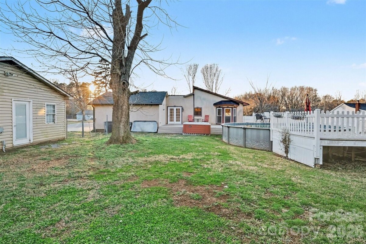 Welcome home to this three-bedroom property situated on a spacious one-acre lot. The outdoor area is designed for both entertaining and relaxation, featuring an above-ground pool with a surrounding deck and a hot tub—perfect for gatherings or a peaceful soak. Step inside to a welcoming living room that flows seamlessly into the dining area. Between the dining room and the kitchen, you’ll find a large butler’s pantry with a closet, offering excellent storage and prep space. The kitchen is equipped with granite countertops, a breakfast bar, a flat-top range and oven, microwave, and a sink positioned beneath a window overlooking the backyard. Pendant lighting and under-cabinet lighting provide both style and functionality. The primary bedroom is large and has dual door closet. The bath has entrance in hall and has shower/tub combination, and single sink. The secodary bath has shower and single sink. The secondary bedrooms are spacious. Additional features include a second garage/shed that can be used for storage, an entertainment area, or hobby space, along with two more storage sheds on the property. The home also boasts a new roof and water heater. The fully fenced backyard offers privacy and plenty of room to enjoy the outdoors.