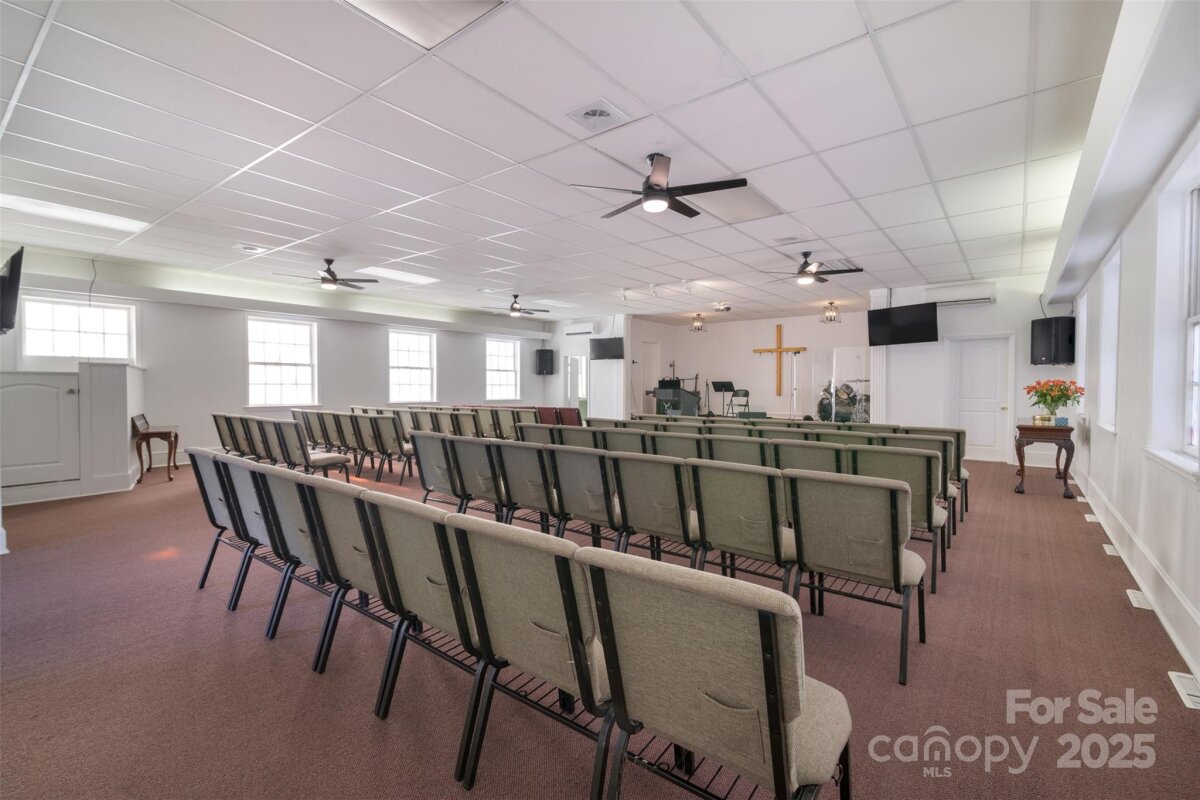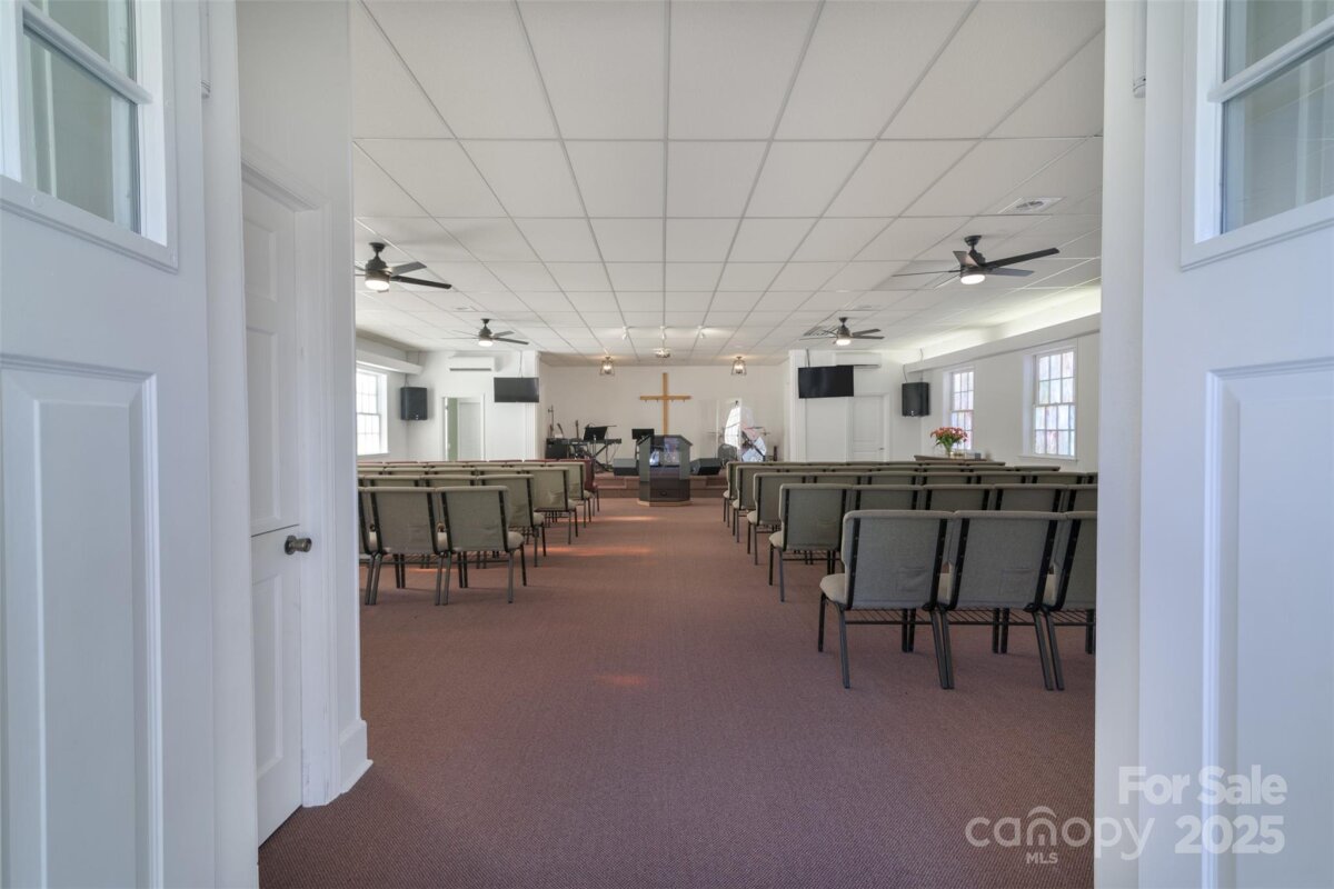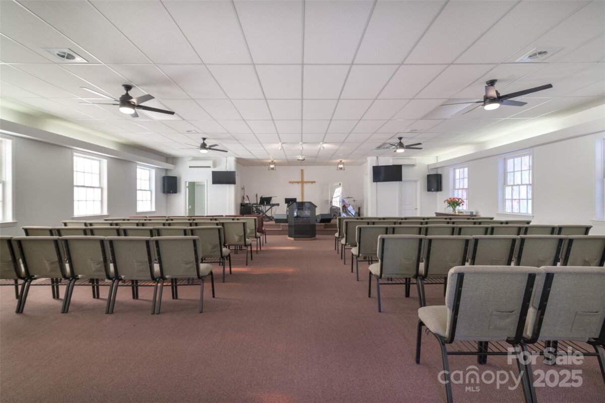 Move in ready church with a perfect location in city limits for outreach opportunity! 1,900 sq ft sanctuary, 1000 sq ft fellowship hall with kitchen, 4 bathrooms, 1 office space, and 3 classroom options. NEW HVAC in December 2025, New Porch in 2024, fresh paint, new floor in fellowship hall, new plumbing fixtures.