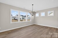 New Craftsman-style home in Harrisburg, featuring a .25-acre flat homesite in an amenity-rich community by Stallings Road Park. Enjoy the open-concept layout and abundant windows, first-floor guest bedroom and bathroom with walk-in tiled shower, Flex room with office, and luxuriously spacious upstairs Premier Suite. The Family room features a gas fireplace flanked by 2 niches for your personal touch, and a large Kitchen with split cooking. There are 42" creamy-grey cabinets with soft-close doors & drawers, double trash pullout, GE stainless steel appliances with a Profile 36" gas cooktop, wall oven, and microwave, plus chimney extraction hood vented outside, and a large walk-in pantry. Tucked off the kitchen is a mudroom with built-in drop zone. Enjoy the outdoors from the large rear covered patio. Upstairs is a spacious Rec room and laundry with tiled floor. Get away from it all in the Premier Suite, with a tray ceiling and huge walk-in closet. The spacious bathroom has a large tiled shower, quartz counters, and tiled floor. Two bedrooms share a Jack & Jill bath. Secondary baths have quartz counters and tiled floors. Medium-toned natural wood color LVP flooring is throughout most of the first floor plus upstairs hall, with oak treads on the stairs. The exterior features Hardie® siding, a carriage-style garage door, and a service side door in the garage. Energy-saving features include a tankless hot water heater and radiant barrier sheathing.
