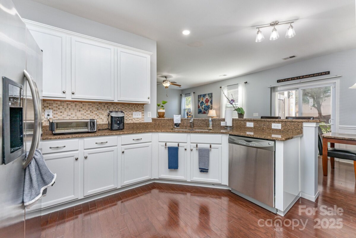 Your dream home awaits on a desirable corner lot in the Cedar Hill Subdivision! This move-in-ready home features 3 spacious bedrooms and 2.5 bathrooms. Start your mornings on the screened-in back porch, overlooking a private backyard complete with a crisp white privacy fence. The exterior showcases a beautiful mix of stone, vinyl, and cedar shake for standout curb appeal. Inside, hardwood floors flow throughout the main level, leading to an open-concept kitchen and living area with granite countertops and a custom tile backsplash—perfect for entertaining guests. With the price of homes in Charlotte this a deal. Schedule your showing today!
