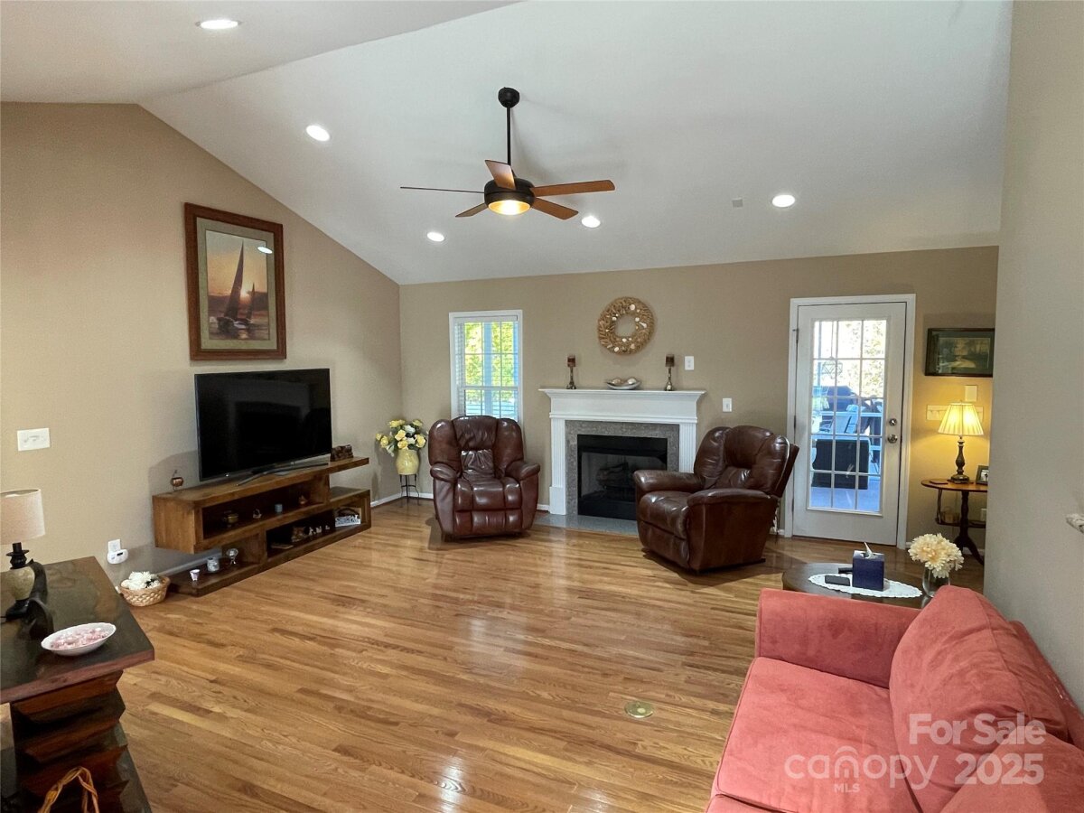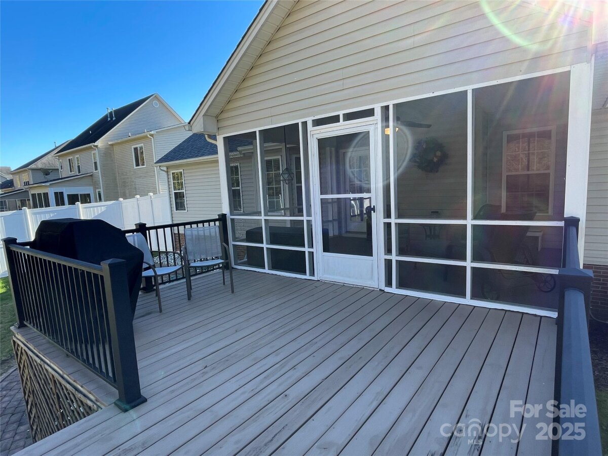 Beautifully Maintained Home with Modern Upgrades and Peaceful Outdoor Living This well-cared-for home combines comfort, quality, and thoughtful updates throughout. Major improvements include a new gas pack installed in 2021 (professionally serviced every six months since installation), an 8’x12’ storage building added in 2021, and a new architectural roof in 2024 for lasting peace of mind. Inside, you’ll find matching granite countertops in the kitchen and both bathrooms, creating a cohesive and elegant look. The kitchen is well-equipped with a microwave, dishwasher, gas range/oven, and an electric warming drawer, plus an icemaker water line ready for your refrigerator. The prefinished hardwood floors in the living room, kitchen, dining area, and primary bedroom add warmth and character. A vaulted ceiling and cozy gas logs enhance the inviting living room, while the primary suite offers a tray ceiling, double sink vanity, Jacuzzi whirlpool tub, separate shower, and walk-in closet. There's even floored attic storage from the pull-down garage access. Throughout the home, you’ll appreciate smooth ceilings and extensive LED recessed lighting for a bright, modern feel. Outdoor living is equally impressive with a screened-in porch, deck, and cobblestone patio, perfect for relaxing or entertaining. The backyard features a fire pit and an 8-foot privacy fence on the sides with split rail fencing at the back, opening to a serene view of the deep forest beyond. This home offers the perfect blend of comfort, style, and functionality—ready for you to move in and enjoy.