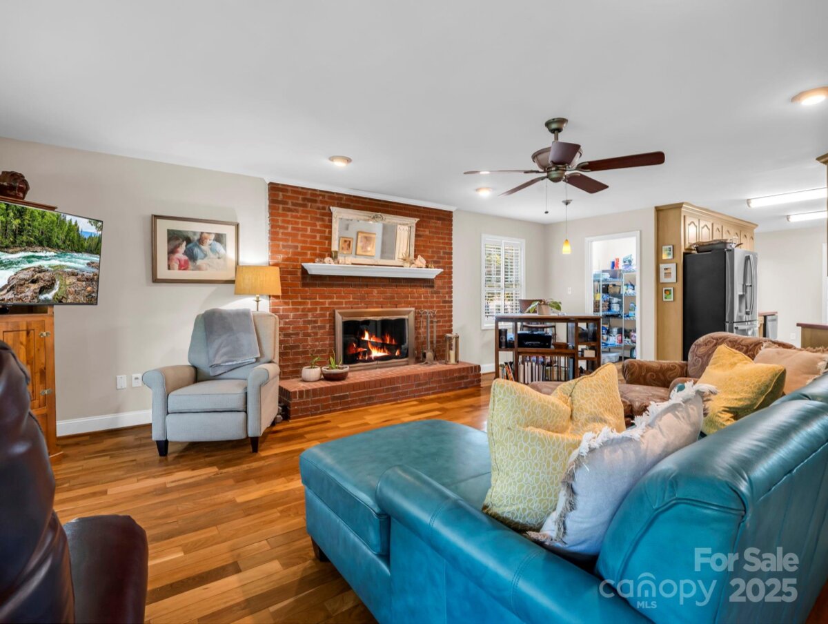 Custom-built and all brick, this beautiful home with a full basement, set in a peaceful country landscape, offers over 1,900 sq. ft. on the main level. Step into the entryway and be welcomed by stunning Brazilian walnut hardwood floors that flow throughout the living spaces and bedrooms. The main level features 3 bedrooms and 2 full baths, an inviting living room with a wood-burning fireplace, and a separate dining room with a distinctive split vaulted ceiling, currently enjoyed as a family room. The kitchen is fully functional with a large pantry, and a covered back deck provides the perfect spot to relax and enjoy nature at its finest! The full basement is a true bonus—offering two separate areas for storage or expansion. One side includes a fireplace, a mini-split heat/air unit in a space already stubbed for a third bathroom, giving a head start for finishing. The other side serves as a workshop with convenient double exterior doors. Set on over 7 acres of mixed open and wooded land, you’ll find 3 separate cleared and fenced pastures, garden space, and grapevines—an ideal setting for those who love space and country living.