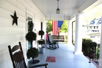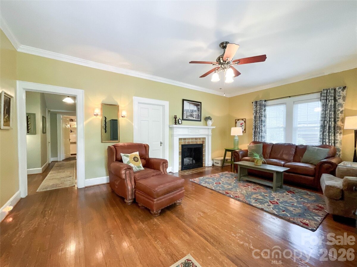 Discover this charming, historic home, nestled on 0.75 acres in uptown Wadesboro. This delightful two-story residence features an updated kitchen and 2-bathrooms while maintaining its historic character, including solid wood doors with original glass knobs on most doors, high ceilings, handcrafted molding, and a vintage telephone nook tucked away in the hallway. The home features three fireplaces with mantels and 1-inch hardwood floors throughout the family room, dining room, hallways and bedrooms; tiled bathrooms. The inviting family room features a cozy fireplace with gas logs and connects seamlessly to the dining room, making it perfect for entertaining. The kitchen is accented with solid surface countertops, sleek appliances, and a spacious sunroom ideal for casual dining or a breakfast area. The primary bedroom suite on the main floor includes a bathroom with a shower. Two-inch wood window blinds. You can unwind on the covered southern front porch in a rocking chair or relax on the deck to enjoy beautiful sunsets and the fenced-in backyard with an open area for gardening and pecan trees. The walkup and walkout basement has a large work area and 2 storage rooms. Best of all, you are in walking distance to uptown restaurants, beer garden, a library, shopping, and the Ansonia Theatre. There are no HOA restrictions! Recent updates include a new roof and 6-inch gutters (2025), first-floor natural gas heating and air conditioning (2024), second-floor AC (2025), and a backyard fence (2024 and 2025).