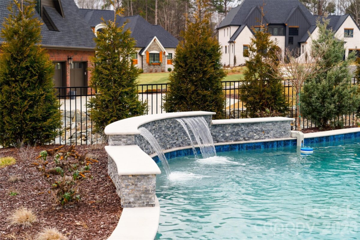 MOVE-IN READY NOW! NEW CONSTRUCTION. Refined custom living with resort-style outdoor spaces and custom pool on a private, professionally landscaped estate in one of Weddington’s most sought-after enclaves. Designed for both elevated entertaining and everyday comfort, this home blends architectural detail, natural light, and seamless indoor-outdoor flow. Experience the rare opportunity to own a fully completed, designer-finished luxury home—ready RIGHT NOW for immediate occupancy—without the wait of building. This exceptional custom residence offers over 5,300 heated square feet on two levels, featuring 4 bedrooms, 4.5 baths, and is perfectly situated on a beautifully landscaped, private .74-acre fenced homesite with ideal Northeast exposure. From the moment you enter through the dramatic 10’ front entry, you’re greeted by soaring 11.5’ ceilings, stunning architectural details, and a showstopping curved staircase that sets the tone for the entire home. Custom coffered ceilings, 8’ doors throughout, and thoughtfully designed living spaces create a seamless blend of elegance and comfort. At the heart of the home, the chef’s kitchen is a true statement piece—featuring a waterfall quartz island, full-height custom cabinetry, designer wood hood, and a suite of top-tier appliances including Thermador, Sub-Zero, and Miele. A fully equipped scullery/second kitchen and dual-layer bar make this home an entertainer’s dream. The level of finish is simply unmatched, with German white oak flooring, imported designer tile, a marble fireplace surround, and luxury lighting from Circa and Visual Comfort. The primary suite offers a spa-inspired retreat, highlighted by an infinity-style shower with advanced Kohler technology and exquisite designer details. Step outside to your own private resort—featuring a $350K–$400K custom saltwater pool, expansive hardscaping, and professionally designed, feng shui–inspired grounds. The covered outdoor living area includes a fireplace, full outdoor kitchen, wood ceiling, motorized MagnaTrack screens, and opens to a spacious patio ideal for year-round enjoyment. Additional highlights include: ~900 sq ft walk-up attic for future expansion Full home automation (lighting, HVAC, shades, audio/visual, security) 9-camera wired security system Hunter Douglas automated window treatments Expanded driveway and upgraded garage doors Located in the highly sought-after Twin Lakes community, residents enjoy a true lifestyle experience with scenic walking trails, waterfront gazebo, community dock, and pickleball courts. This is a rare, one-of-a-kind opportunity to own a fully upgraded, move-in ready NEW construction home with a custom pool—available NOW in the prestigious Weddington School District.