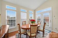 Beautifully bright end-unit brick townhome with open living area & private fenced-in backyard. Home opens up with entryway and formal dining room on the left. Hardwood floors flow throughout main level into living area flooded with natural light from a full wall of windows including sunroom space / breakfast nook. Kitchen has breakfast bar seating option, New (2022) updated S.S appliances including gas range, plus tons of cabinets and pantry for storage. Upstairs the primary bedroom suite has tray ceiling and walk-in closet plus attached full bath partially renovated in 2023 including dual sinks, stand-up glass shower, and soaking tub. 2 additional bedrooms plus beautifully fully renovated (2023) full hall bath perfect for family & friends. Enjoy grilling out on the back patio in the spacious backyard and beyond that enjoy the large playground and community pond with walking trails around it. Behind the unit is spacious green space ensuring ultimate privacy - all perfectly situated between Indian Trail & Monroe. UPDATES INCLUDE: 2022 new roof & entire home flooring + S.S appliances. 2023 - Chandeliers & blinds + guest bathroom & primary bathroom.
