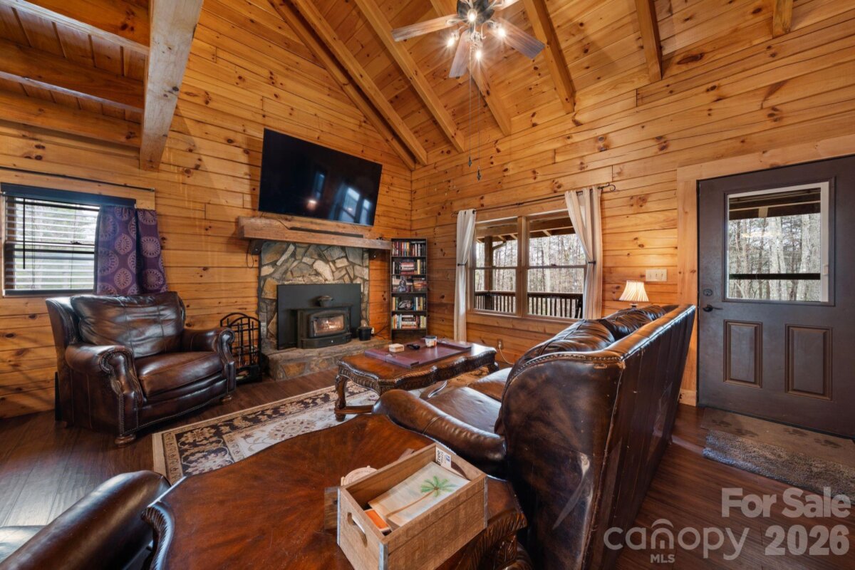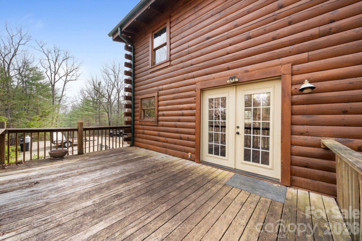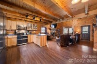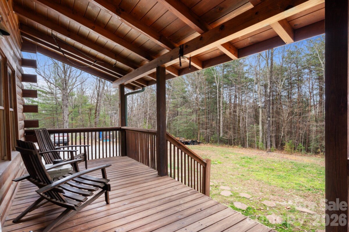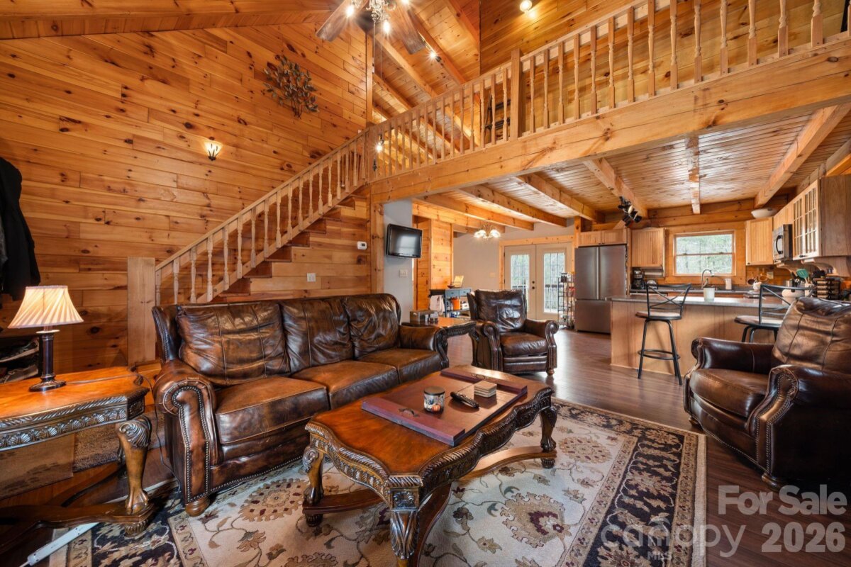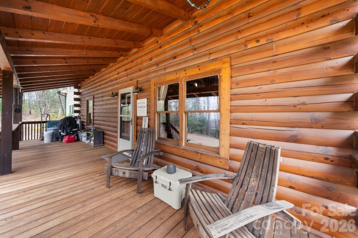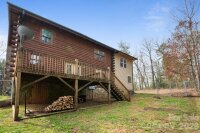 Tucked away in the scenic foothills, located in the sought after Dudley Shoals area, this beautifully maintained log home on almost 7 acres offers rustic charm and room to grow. Wake up to serene mornings on your rocking chair front porch sipping coffee as birdsong and gentle breezes welcome the day with natures beauty unfolding right before you. Inside, you’ll find a spacious, functional layout with an inviting main living area that flows seamlessly into the kitchen and dining space, ideal for both everyday living and entertaining. The kitchen has been updated with new stainless steel appliances, offering a clean, modern contrast to the warmth of the natural wood interior, plenty of storage and a breakfast bar that provides additional seating. Enjoy winter evenings gathered around the wood stove in the living room. Upstairs offers a large family room, full bathroom and two additional bedrooms with a 4th room currently being used as a home gym. Primary suite on main level with his and hers walk-in closets, a large garden tub, tiled walk-in shower, and dual vanities. Step out back on the large deck to enjoy the fenced-in backyard, perfect for pets, play, or simply relaxing in your own private outdoor space. The logs were professionally refinished in 2022 providing long term durability. Surrounded by the natural beauty of Western North Carolina, this property offers the peace and privacy buyers are looking for while still being conveniently located to Lenoir, Hickory, and the High Country. This home is full of character—and one you don’t want to miss.