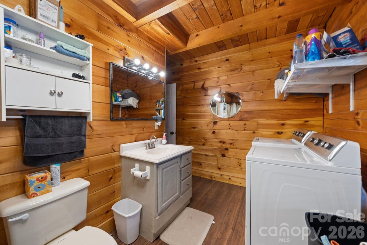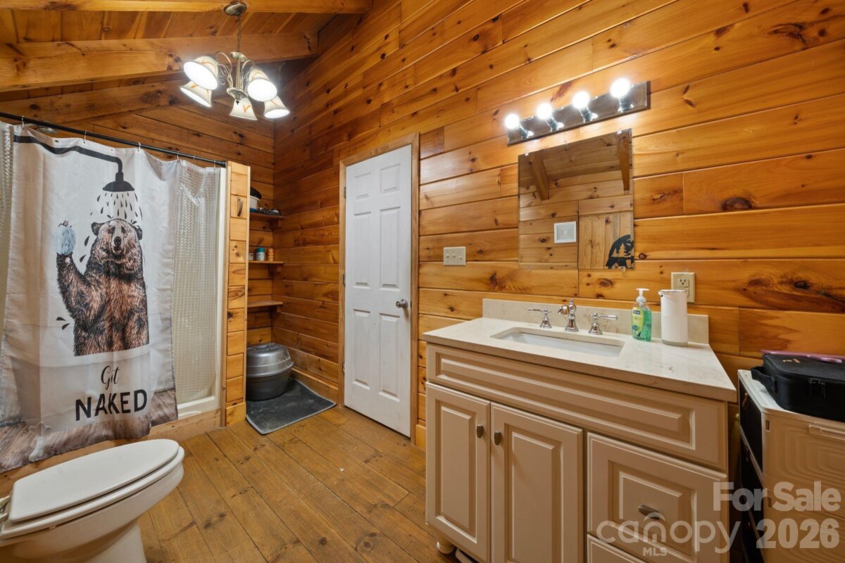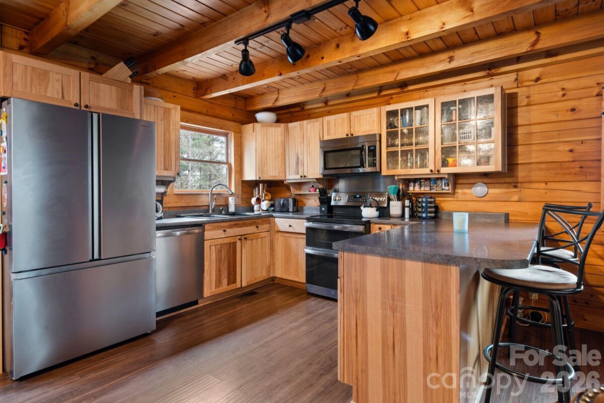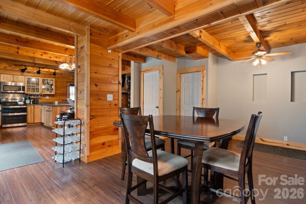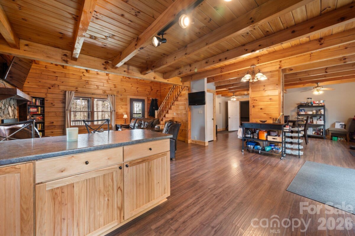 Tucked away in the scenic foothills, located in the sought after Dudley Shoals area, this beautifully maintained log home on almost 7 acres offers rustic charm and room to grow. Wake up to serene mornings on your rocking chair front porch sipping coffee as birdsong and gentle breezes welcome the day with natures beauty unfolding right before you. Inside, you’ll find a spacious, functional layout with an inviting main living area that flows seamlessly into the kitchen and dining space, ideal for both everyday living and entertaining. The kitchen has been updated with new stainless steel appliances, offering a clean, modern contrast to the warmth of the natural wood interior, plenty of storage and a breakfast bar that provides additional seating. Enjoy winter evenings gathered around the wood stove in the living room. Upstairs offers a large family room, full bathroom and two additional bedrooms with a 4th room currently being used as a home gym. Primary suite on main level with his and hers walk-in closets, a large garden tub, tiled walk-in shower, and dual vanities. Step out back on the large deck to enjoy the fenced-in backyard, perfect for pets, play, or simply relaxing in your own private outdoor space. The logs were professionally refinished in 2022 providing long term durability. Surrounded by the natural beauty of Western North Carolina, this property offers the peace and privacy buyers are looking for while still being conveniently located to Lenoir, Hickory, and the High Country. This home is full of character—and one you don’t want to miss.