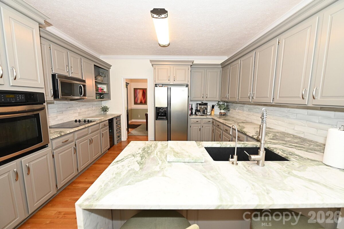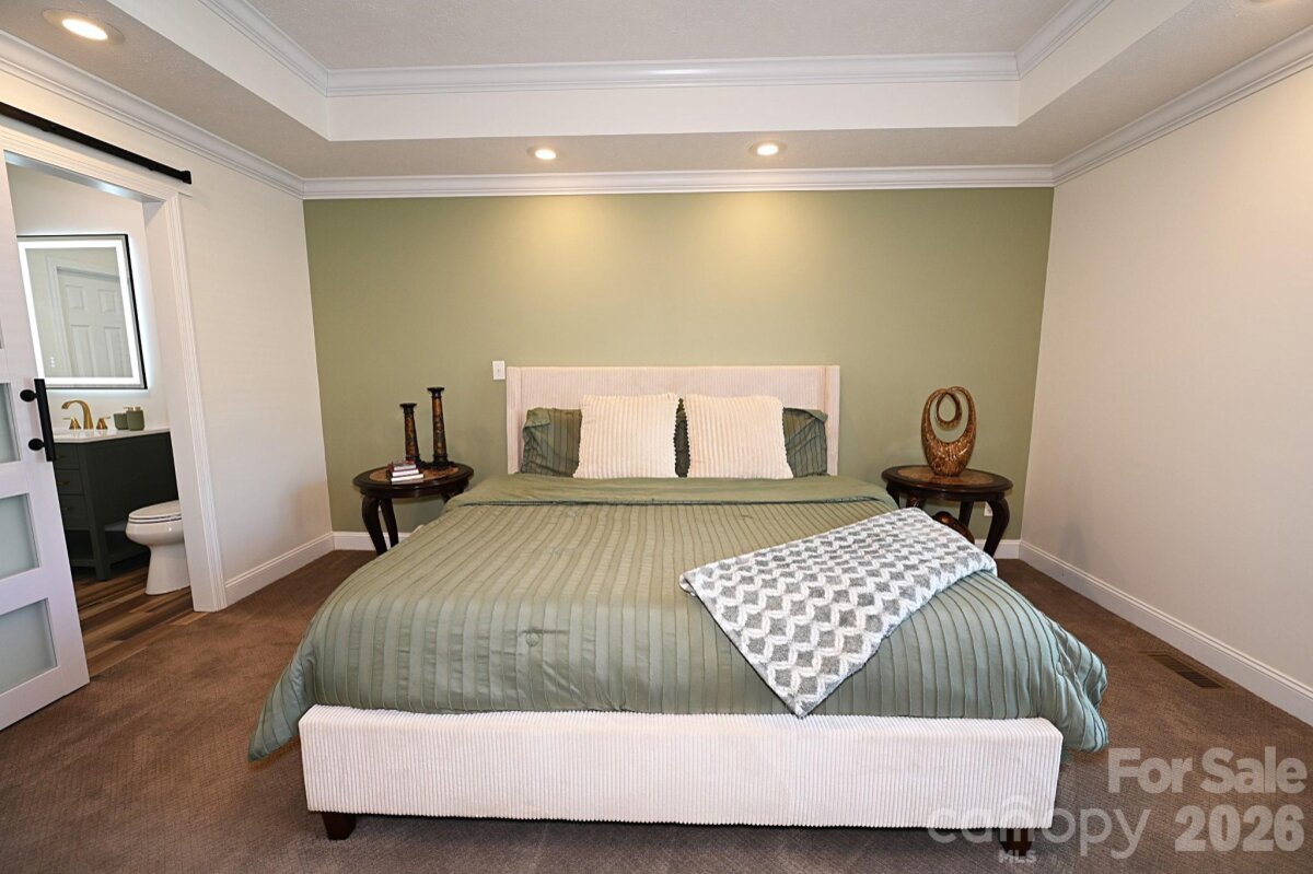 Welcome to this immaculate, full-brick 4-bedroom, 3.5-bathroom estate, perfectly situated in the highly sought-after Lecho Park community of Conover, NC. Since 2024, this home has undergone a sophisticated transformation, blending its timeless architecture with high-end, modern finishes that cater to the most discerning homeowner. From the moment you step through the front door, you are greeted by a soaring entry foyer under a dramatic cathedral ceiling, setting an immediate tone of light and airiness. The main level features stunning real hardwoods that flow seamlessly through the open layout. To your left, a formal dining room waits to host your next holiday gathering, while a versatile extra room off the foyer serves as the perfect quiet retreat for a home office. The heart of the home is the expansive family room, now anchored by a stunningly renovated fireplace that serves as a sophisticated focal point for the space. This designer update perfectly bridges the living area with the newly reimagined chef’s kitchen—a complete masterpiece of design. Renovated from top to bottom, the kitchen boasts sleek leathered quartzite countertops, premium stainless-steel appliances, and a beautiful tile backsplash. This same commitment to luxury extends to the main-floor laundry room and guest bathroom, both of which have been fully updated with matching leathered quartzite finishes and contemporary fixtures. The primary suite, conveniently located on the main level, has been reimagined into a true spa-like sanctuary. It features a unique and highly functional layout with two entirely private vanity and commode areas, each with its own dedicated walk-in closet. These private spaces are joined by a magnificent, shared designer tile-and-glass shower and a deep soaking tub, offering a resort-style experience without leaving home. Upstairs, you will find three additional generously sized bedrooms, each offering ample storage with one or two walk-in closets per room. The home’s thoughtful layout is complimented by practical design, including a spacious walk-in attic and oversized windows that bathe every room in natural light. The transformation continues outdoors, where the backyard has been turned into a peaceful sanctuary. Step out onto the massive, newly installed stone patio—the perfect spot for summer grilling or evening stargazing. The backyard is fully enclosed by a 6-foot white privacy fence, and because the neighboring lot features lush, mature trees, you’ll enjoy a rare sense of seclusion and tranquility. The professional landscaping and irrigation system is the finishing touch on this beautiful outdoor living and playing space. Enjoy the best of Conover living and quick access to I-40, NC 16 for travel east, west, north. In addition, you are just minutes away from the boutique shopping and dining in Downtown Conover, including local favorites like the Shoppes On Main and True Boutique. For those who enjoy active luxury, the renowned Rock Barn Country Club & Spa is right around the corner. This is more than just a house; it is a meticulously updated home where every detail has been handled with care. Welcome home to Lecho Park in Conover, NC!