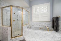 Seller is offering a $15,000 allowance for flooring to be paid at closing. This luxurious 4 bedroom, traditional brick home is located in the highly sought-after Johnsfield subdivision. Roof is approximately 2 to 3 years old. You are greeted by a beautifully landscaped yard with lots of space and privacy in the back. Upon entering this lovely home you will find plenty of natural light and crown molding throughout. The dining room is located to the left of the foyer, and the office is off to the right. The large living room features a gas log fireplace and leads onto the expansive deck with Chippendale railing. Enter the ideal kitchen for those who like to entertain. The custom kitchen has a massive island with Kenmore Pro-elite stainless steel appliances and new windows. The laundry room has lots of counterspace to fold clothes and a handy laundry chute from the second floor. The primary bedroom suite is located on the first floor and has an ensuite bathroom complete with jetted tub, shower and double sinks. Two separate powder rooms on the main level allow added convenience for entertaining. There are three bedrooms upstairs and a bonus room. One bedroom has its own ensuite bathroom, and the other two bedrooms share a bathroom. The partially finished basement has potential for expansion or extra living space. The lower-level living room has a woodburning fireplace. This room opens onto a fenced dog run that is located under the upper deck. There are 2 workshops, and plumbing has already been installed on the back wall. This home has been well-maintained and is ready for its new owner.