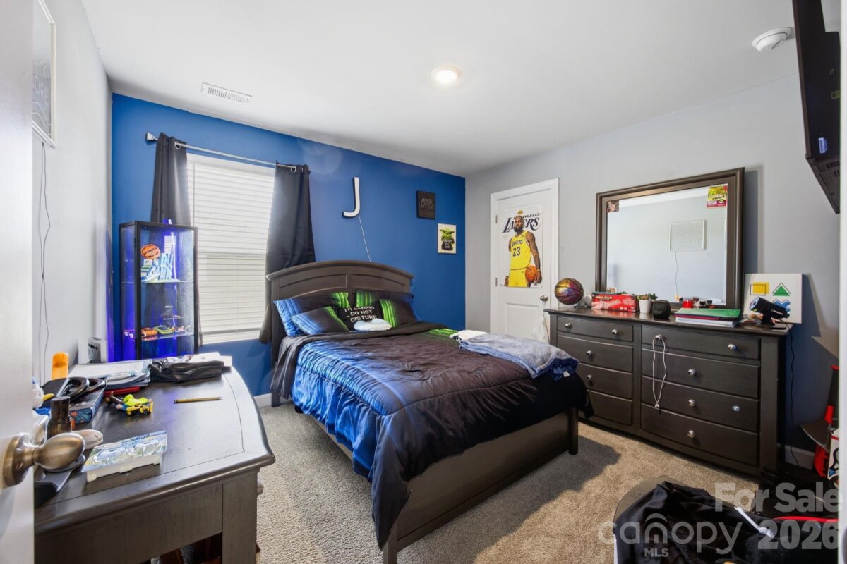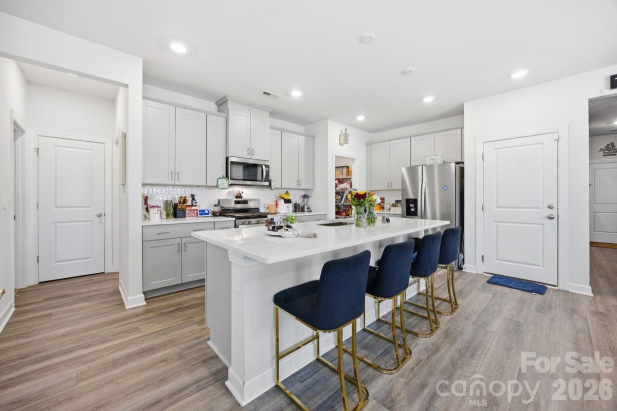 Built in 2024 by Meritage Homes, this beautiful home offers modern design and exceptional space with a highly sought-after open floor plan. The main living areas feature durable luxury vinyl plank flooring, while plush carpet adds comfort to the bedrooms and upper level. At the heart of the home, the kitchen boasts a large island, perfect for entertaining, gathering, and everyday living. With 5 spacious bedrooms and 3 full bathrooms, this home provides flexibility for a variety of needs. A convenient main-level bedroom and full bath are ideal for guests or multi-generational living. Upstairs, you’ll find four additional bedrooms along with a generous loft space, giving you lots of design options. The primary suite offers a relaxing retreat with a full bathroom featuring a double vanity and a walk-in closet. Step outside to enjoy a fenced backyard that backs up to mature trees, providing both privacy and a peaceful setting. Situated on one of the largest lots in the neighborhood, there’s plenty of room to relax or entertain outdoors. Residents also enjoy access to a community pool, adding to the neighborhood’s appeal. Conveniently located less than 20 minutes from Concord, Kannapolis, Harrisburg, and Huntersville, this home combines comfort, style, and accessibility.