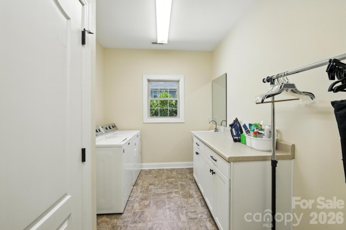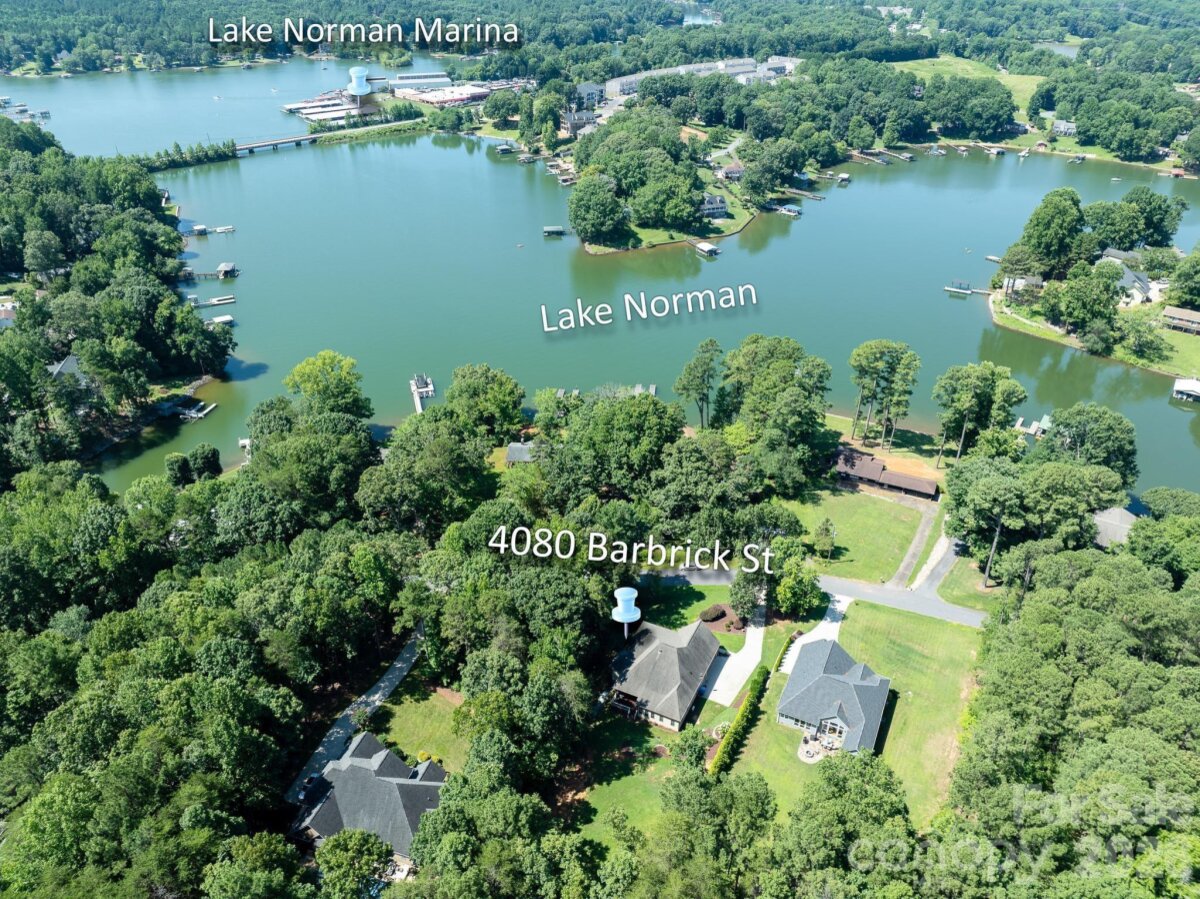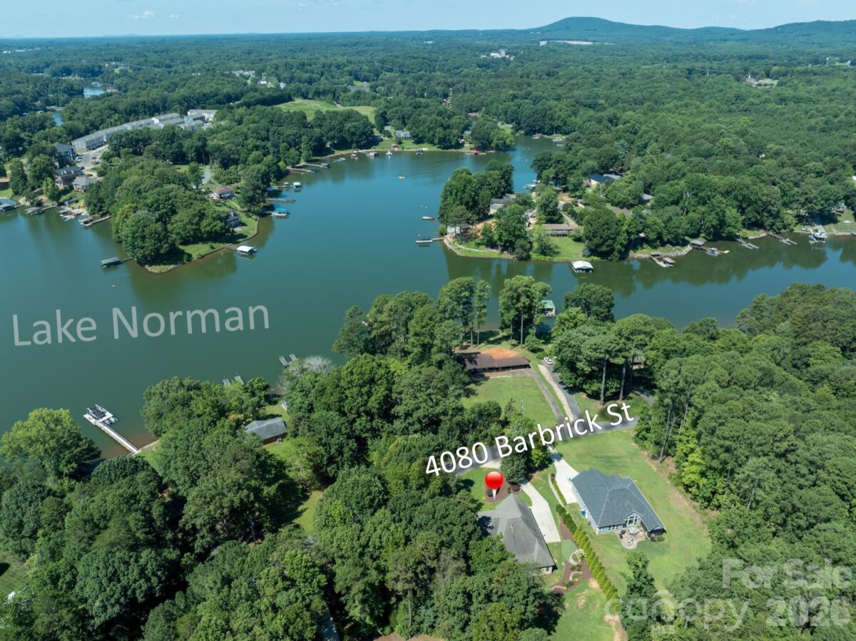 Built in 2015 and located directly across from Lake Norman with seasonal water views, this well-maintained home offers functional one-level living with a versatile floor plan. The open main living area features granite countertops, custom cabinetry, updated lighting, and a designated dining space. The main level includes two primary suites, each with a walk-in closet and a walk-in shower. An additional bedroom suite is located above the garage with a full bath and separate mini-split system, providing flexible space for guests or extended living arrangements. Additional features include a spacious laundry room with a utility sink and storage, a half bath off the attached two-car garage, and ample storage throughout. Outdoor spaces include a covered front porch with lake views and a covered rear porch with low-maintenance landscaping. Conveniently located with access to major commuting routes to Charlotte and the Hickory area, and within close proximity to public Lake Norman access for boating and recreation.