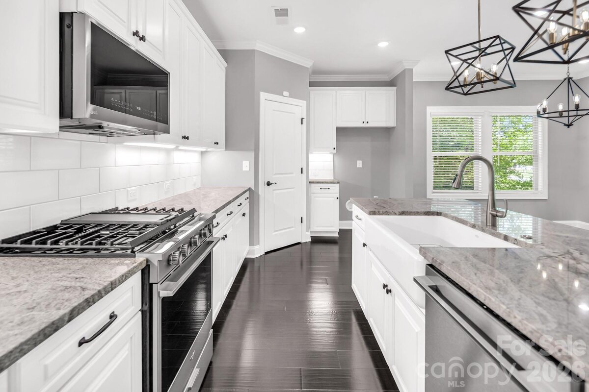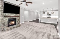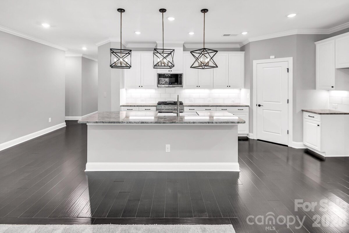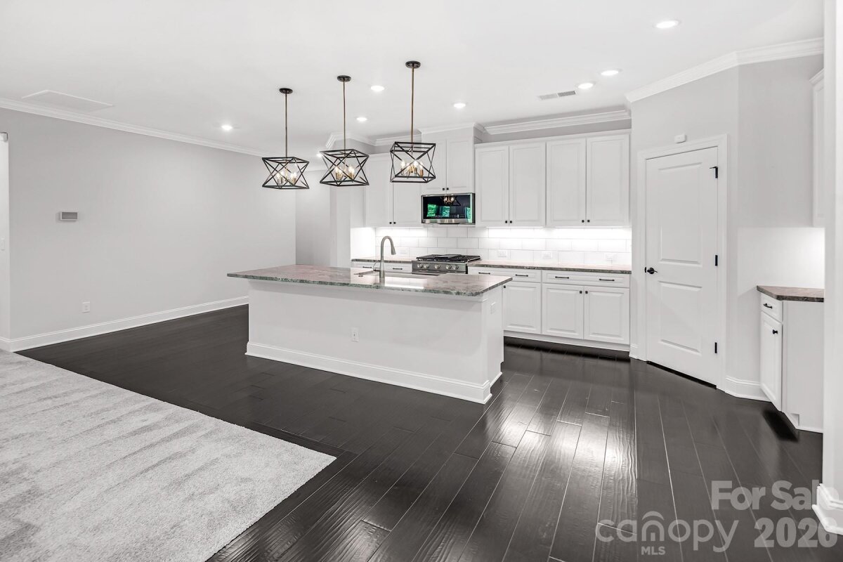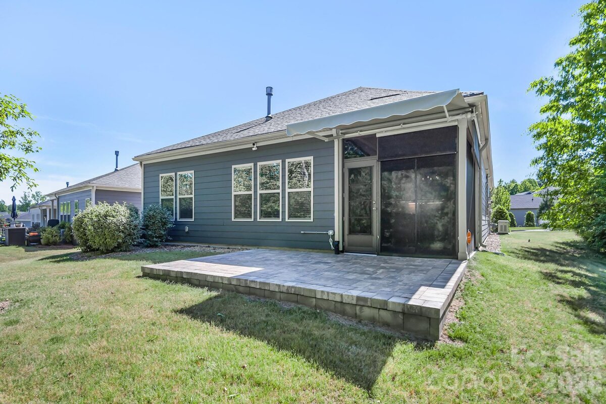 Impeccably maintained and thoughtfully upgraded, this stunning home sits on a private corner lot backing to community open space—perfect for peaceful outdoor living. Enjoy serene views from the screened porch or unwind on the beautifully designed paver patio. Designed for convenient main-level living, the home features 3 bedrooms, 2.5 baths, and a versatile office/flex space. A functional drop zone at the garage entry adds everyday ease. The chef’s kitchen is a true centerpiece, showcasing a large island, farmhouse sink, touchless faucet, gas cooktop, under-cabinet lighting, granite countertops, and abundant soft-close cabinetry. It opens seamlessly to the spacious family room, highlighted by a striking stacked stone fireplace and a 77" Sony TV with surround sound—ideal for entertaining or relaxing nights in. The generous primary suite features a tray ceiling and a luxurious en-suite bath with dual vanities, granite counters, and a large semi-frameless glass shower. A spacious walk-in closet completes the retreat. Secondary bedrooms share a convenient Jack-and-Jill bath. Additional highlights include a well-equipped laundry room with storage, a tankless water heater, foam-insulated climate-controlled attic, and a full-house Generac generator for added peace of mind. Step outside to enjoy the screened porch with EZ View windows and remote-controlled Sunsetter shades, or relax on the paver patio with a retractable awning—perfect for year-round enjoyment. Located in the desirable Canopy Creek community with access to a pool, and just minutes from Lake Norman, this home offers easy access to schools, shopping, dining, and major routes to Charlotte, the airport, Hickory, and Lincolnton. Move-in ready and truly a must-see!