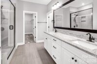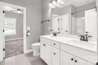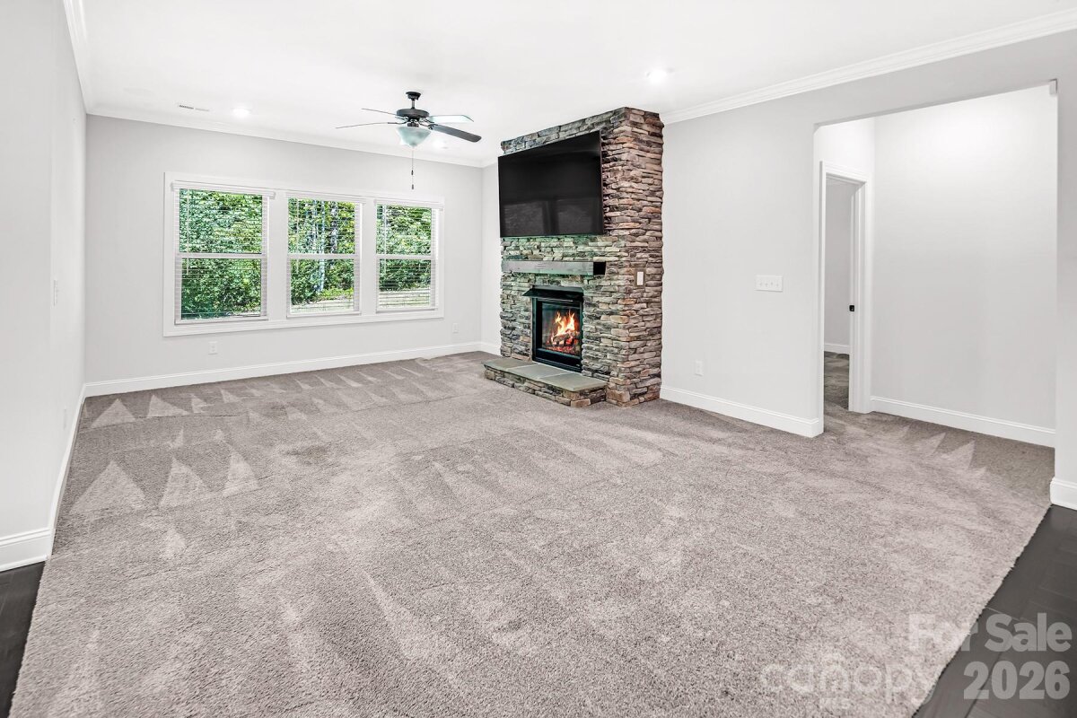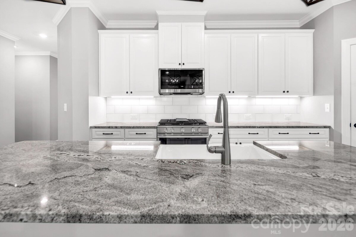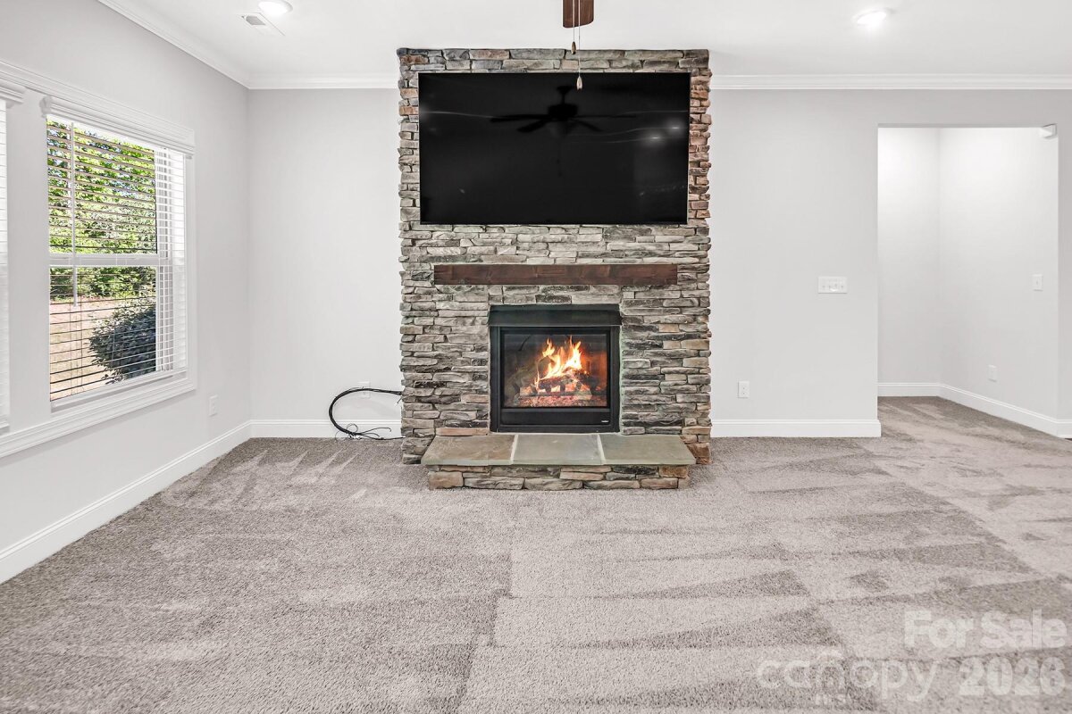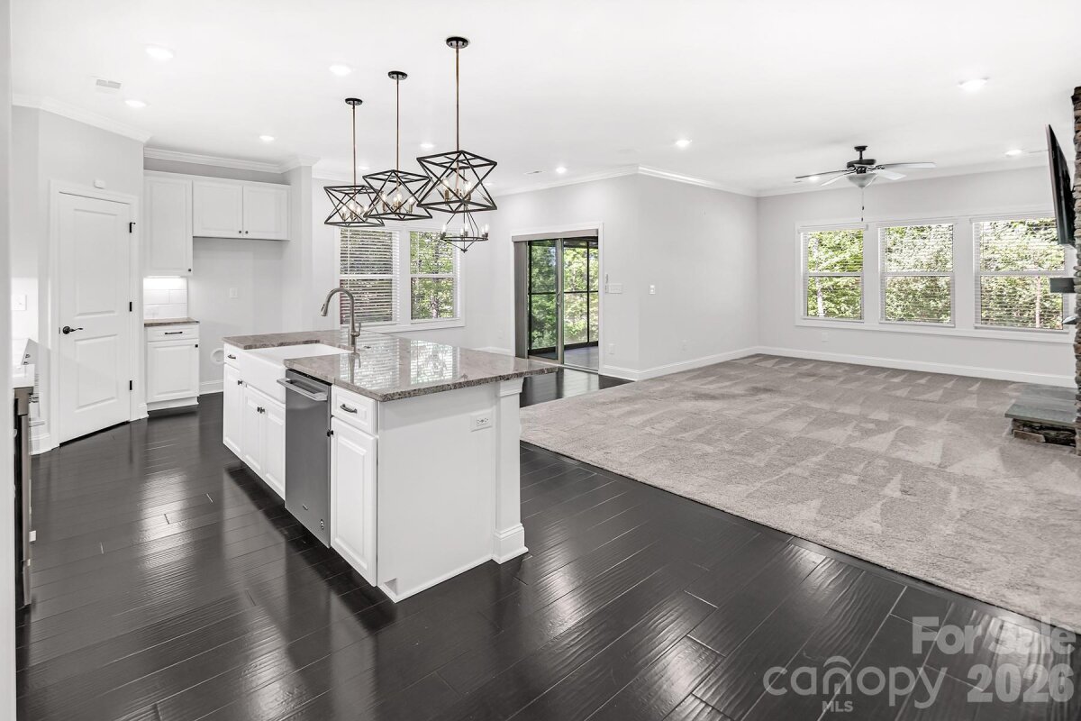 Impeccably maintained and thoughtfully upgraded, this stunning home sits on a private corner lot backing to community open space—perfect for peaceful outdoor living. Enjoy serene views from the screened porch or unwind on the beautifully designed paver patio. Designed for convenient main-level living, the home features 3 bedrooms, 2.5 baths, and a versatile office/flex space. A functional drop zone at the garage entry adds everyday ease. The chef’s kitchen is a true centerpiece, showcasing a large island, farmhouse sink, touchless faucet, gas cooktop, under-cabinet lighting, granite countertops, and abundant soft-close cabinetry. It opens seamlessly to the spacious family room, highlighted by a striking stacked stone fireplace and a 77" Sony TV with surround sound—ideal for entertaining or relaxing nights in. The generous primary suite features a tray ceiling and a luxurious en-suite bath with dual vanities, granite counters, and a large semi-frameless glass shower. A spacious walk-in closet completes the retreat. Secondary bedrooms share a convenient Jack-and-Jill bath. Additional highlights include a well-equipped laundry room with storage, a tankless water heater, foam-insulated climate-controlled attic, and a full-house Generac generator for added peace of mind. Step outside to enjoy the screened porch with EZ View windows and remote-controlled Sunsetter shades, or relax on the paver patio with a retractable awning—perfect for year-round enjoyment. Located in the desirable Canopy Creek community with access to a pool, and just minutes from Lake Norman, this home offers easy access to schools, shopping, dining, and major routes to Charlotte, the airport, Hickory, and Lincolnton. Move-in ready and truly a must-see!