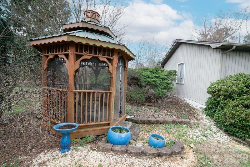 Nestled on nearly an acre in the River Ridge Run subdivision, this spacious 4 bedroom, 3.5 bath home offers almost 3000 HSF of comfortable living with room to relax, entertain and enjoy the outdoors. Inside you will find multiple level living areas, with 2 fireplaces, built-ins, solid quartz countertops in the kitchen with stainless steel appliances, en suite primary bedroom, granite tile in bath rooms, wet bar, wine chiller and a finished basement perfect for a game room, home office or extra guest space complete with a Murphy bed. Step outside to enjoy plenty of yard space for gatherings on the covered porches, gazebo, fire-pit or gardening from the "she shed". Plenty of storage area, too! Located just minutes from Lake Hickory, marinas, dining and shopping. Whether you're looking for a primary residence or a weekend lake area escape, this home offers the perfect balance of privacy and convenience. Roof 2011, HVAC 2021 & 2014, water heater 2-3 years old, septic pumped 5 years ago. House has termite bond.