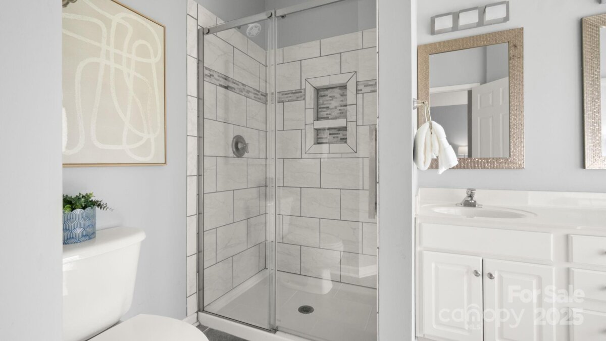 Beautifully updated 4 bed, 2.5 bath, single-family home on a cul-de-sac lot in desirable Waterstone neighborhood in Fort Mill - new floors including luxury vinyl plank and new carpet on main floor, updated countertops, & kitchen appliances are 2020 or newer. Featuring a two-story great room with a gas log fireplace, enjoy incredible natural light from the 2 story windows. Enlarged primary bedroom on Main w 2 individual walk-in closets, double vanity, garden tub & separate shower with upgraded tile. Upstairs, find 3 addtl spacious bedrooms, light and bright, w excellent closet space, as well as a full bath. Private fenced backyard with patio. Community amenities include outdoor pool, clubhouse, playground, sport court, and recreation space! Convenient and walkable to Aldi, Model A Brewery, and more. Just minutes to Baxter Village, Tega Cay, and I-77.