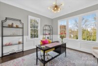 Claim your seat at the table. This perfectly curated Cotswold residence is made for festive gatherings, sparkling toasts, and effortless entertaining all season long. A custom Kelly McArdle, full brick masterpiece, offers rich hardwood flooring throughout, sun drenched light, and neutral hues across more than 6,000 heated square feet of living area with 6 bedrooms,5 full baths, and 2 1/2 baths. A welcoming foyer sets an elegant tone, framed by refined millwork and clear views into the living spaces. Just off the entry, a lovely home office with French doors provides a polished work retreat with quiet privacy and style. The spacious formal dining room follows and flows to a custom butler’s pantry with beverage fridge, bar, freezer, and abundant storage, making hosting truly seamless. At the heart of the home, the culinary atelier marries performance and polish with a Thermador appliance suite including a professional 6 burner range with griddle, dual dishwashers, a ceramic farmhouse sink, an expansive quartz island with dedicated prep sink, an enclosed coffee bar, and tailored custom cabinetry. A fireplace anchored living room with built-ins sets an elegant tone, while multi slide glass doors open fully to a screened, covered porch with television, creating effortless indoor and outdoor living to a private backyard. The serene main level primary unfolds with two bespoke closets and a spa inspired bath with custom blackout shades, a deep soaking tub, and a frameless glass shower, plus private in suite laundry and seamless access to a screened lanai that extends the suite into the fresh air. Upstairs, a sunlit reading nook introduces a cozy loft for media or quiet retreat. The upper level offers four additional bedrooms, most with ensuite or Jack and Jill baths, generous closets throughout, and a second laundry room with utility sink and Spanish tile for effortless living. The lower level expands functionality with a wet bar, home gym, and salon. Outside, a well-lit porte-cochère with a covered breezeway leads to a three car garage topped by a detached, heated and cooled guest house with half bath, an ideal studio, multigenerational suite, or hobbyist retreat. Smart thermostats, three HVAC units, a whole house generator, and an irrigation system deliver comfort and peace of mind year round. Moments from Charlotte Swim and Racquet Club, this extraordinary home captures the essence of Cotswold luxury living, spacious, smartly designed, and beautifully private.