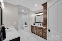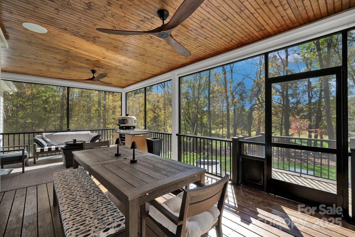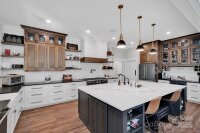 A truly exceptional, custom-built home perfectly positioned on 1.23 acres overlooking the 13th and 14th fairways of the prestigious Jones Golf Course at Rock Barn. Completed in 2022, this home offers privacy and stunning sunset and water feature vistas; a rare offering within this sought-after community. The open-concept main level features 10 ft ceilings, custom trim and wainscoting, crown coping, and casement picture windows framing the beautiful golf course views. The chef’s kitchen is a showpiece, boasting a 48†dual-fuel range with commercial-grade hood, Café appliances with beverage center, marble backsplash to the ceiling, oversized quartz island with prep sink, instant hot water, glass rinser, pot filler, and custom solid maple cabinetry with built-in mixer lift, open shelving, and under cabinet lighting. A walk-through pantry with hidden Murphy door adds both charm and practicality. The primary suite is a private retreat featuring an exquisite spa-style wet room with curbless marble shower (dual heads + rain shower) and soaking tub enclosed in marble, along with a custom-built closet system and direct access to the laundry room for convenience. All bathrooms feature designer tile, high-end fixtures, and retractable sink heads. Outdoor living is at its best here. Enjoy a screened porch with retractable panels for an unobstructed view, a saltwater hot tub, and a fully equipped outdoor kitchen with sink, refrigerator, and countertop. Step down to a paver patio with a Pyro fire pyramid and under-deck storage space. Even more, the yard includes full irrigation, landscape lighting, and a fenced backyard. Additional highlights include an encapsulated crawl space, whole-house water filtration system, tankless gas recirculating water heater, and Generac generator with a dedicated panel for backup power. Three HVAC zones ensure year-round comfort. LP SmartSide siding, a stone mailbox, and flemished double front doors add timeless curb appeal. The oversized garage is designed for convenience with epoxy flooring, insulated doors, side-mount quiet lifts, a utility sink, hot/cold water spigot, and storage shelving. A separate golf cart bay and EV prewire offer flexibility for modern living. Every space has been maximized with thoughtful design; from oversized bedrooms with ample closets to a vaulted foyer with tongue-and-groove bead board ceiling. Even practical details have been elevated, like the central vacuum system with in-wall retractable hoses, and step lighting on the staircase. Become a member of the Rock Barn Country Club and enjoy access to world-class amenities including championship golf courses, a luxurious spa (do not need to be a member to access spa), fitness center, fine dining, and more; all within a peaceful, beautifully maintained setting. Experience the best of Rock Barn living and call 4111 Ridge Rd. NE your new home!