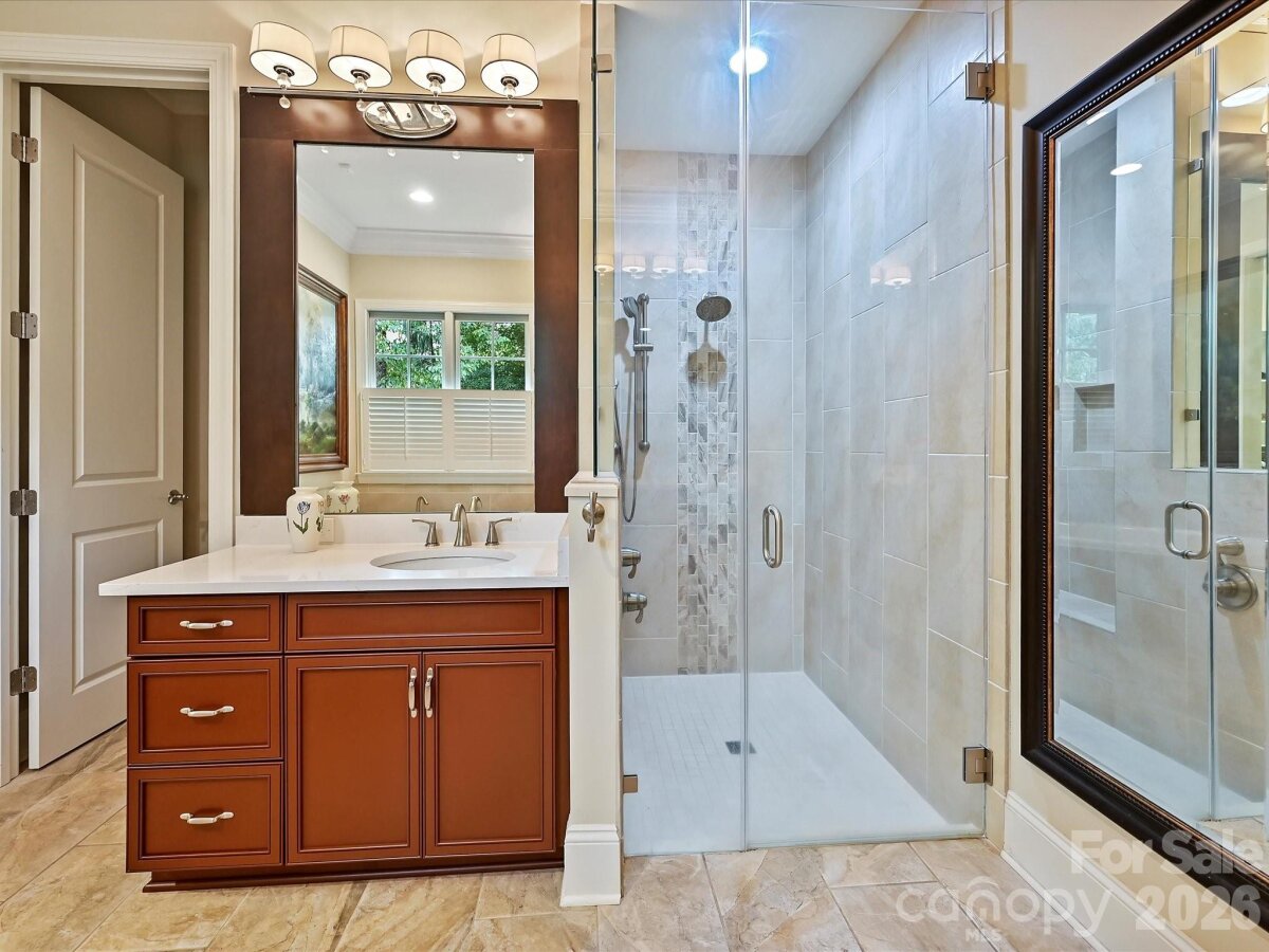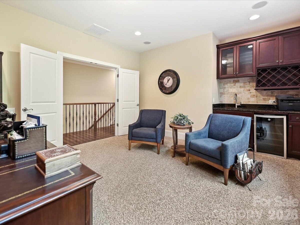 RARE OPPORTUNITY in the Woodlands side of Cheval. Don't miss the opportunity to live in Cheval, a beautiful equestrian community in Mint Hill. Luxury countryside living just 20 mins to Uptown Charlotte. CUSTOM Built by Arthur Ruttenberg. The owners retreat on the MAIN, huge walk-in closet, primary bath with separate sinks, soaking tub & walk-in shower. Office on main level with vaulted ceiling overlooking front yard. Open family room to kitchen with beautiful sliding doors into wall to screen porch - bringing the outside in. Kitchen with large island, upgraded custom cabinets, granite countertops, butlers station & formal dining room. Hardwoods on main level (excluding the Primary Suite) This home is fantastic for entertaining. Drop zone & utility room lead you into 3-car garage. Secondary primary suite or junior suite upstairs w/oversized bath step-in shower. Bonus w/custom entertainment bar/wine refrigerator & double doors entry. Huge oversized Rec room with a fun climbing wall, secret little room behind the built in bookshelf. Great rec room for kids or grands. Enjoy this equestrian masterpiece neighborhood and all it's well manicured common areas and small parks throughout. Cheval is nestled in the small town of Mint Hill, southeast suburb of Charlotte. This luxury neighborhood has the top featured home builders in Charlotte. Top of the line equestrian facilities, for those horse lovers and over 425 beautiful acres, with home sites and riding trails. Cheval has several uniquely themed villages throughout the community. Country living just minutes from downtown Mint Hill convenient to I485.