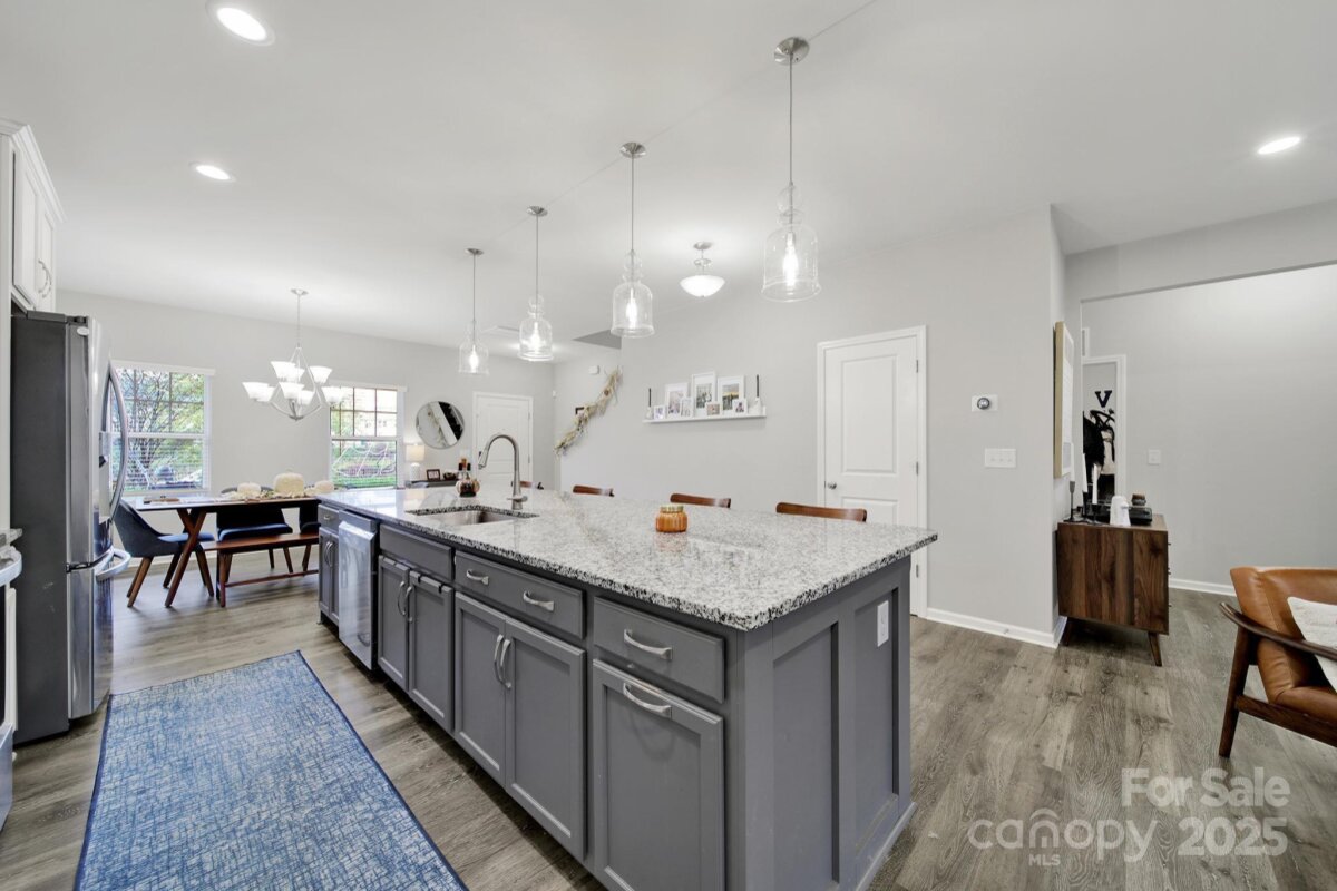 Welcome to 4115 Stockbrook Drive in the sought-after Brentwood community! Built in 2020, this beautifully maintained 3-bedroom, 2.5-bath home offers 2,422 sq ft of modern living. The open-concept main level features a spacious kitchen with a large island, granite countertops, stainless steel appliances, and plenty of storage. The primary bedroom is conveniently located on the main floor with a private ensuite and walk-in closet. Upstairs includes two additional bedrooms, a full bath, and a versatile loft space perfect for a home office or media area. Enjoy outdoor living on the screened-in back porch overlooking the backyard. Additional highlights include LVP flooring, neutral finishes throughout, and a two-car garage. Conveniently located near shopping, dining, and just minutes from Uptown Charlotte.