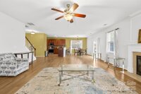 Beautiful brick-front, two-story home located in the desirable Coventry subdivision! This inviting home features a covered front porch with columns—perfect for relaxing and enjoying the Carolina skies. Inside, you will find classic charm, spacious living areas, and beautiful laminate wood flooring and high ceilings throughout the main level, ideal for both everyday living and entertaining. A spacious dining room welcomes you upon entry and features an elegant arched opening into the kitchen. The large kitchen offers 42†cherry-colored maple cabinets with satin knobs, abundant counter space, tile backsplash, smooth-top electric range, built-in microwave, upgraded lighting, pantry, and a bar-height counter for seating. The kitchen flows into a bright breakfast area overlooking the private, fully fenced backyard. The open living room showcases high ceilings, a ceiling fan, and a beautiful gas fireplace with gas logs and mantle—perfect for cozy evenings at home. You can head upstairs knowing there is a stair lift with chair providing added convenience if assistance is needed. The upper level offers five spacious bedrooms. One bedroom could be a large bonus room with a closet or an optional oversized fifth bedroom. The generous primary suite features tray ceilings, ceiling fan, and two walk-in closets. The primary ensuite bath includes dual vanities, a garden tub, and a separate shower. Laundry is conveniently located upstairs for ease. Enjoy outdoor living in the fully fenced backyard with patio, ideal for relaxing or entertaining. Nestled in an established community with sidewalks, a neighborhood pool, and playground, this home also offers convenient access to shopping, dining, everyday essentials, and minutes to I-485 for ease of commuting to work, school or traveling. ***Seller is offering a $5,000 CONCESSION that the buyer may use toward closing costs, home improvements, or to buy down the interest rate—BUYER'S CHOICE!*** Don’t wait—schedule your showing today and make this beauty your next address! ***PRICE IMPROVEMENT ON 03/15/2026 - NEW PRICE $420,000***