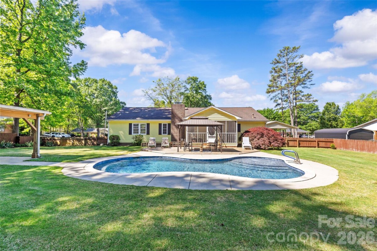 Beautiful ranch home ideally located close to town and local schools. This three bedroom, two bath property offers over 1,700 square feet of comfortable, single-level living on just under half an acre The home features oversized bedrooms, updated bathrooms, and a functional layout designed for easy living. Step outside to a private backyard oasis complete with a beautiful pool and lush, thoughtfully designed landscaping—perfect for relaxing or entertaining. An attached one-car garage adds convenience, while the detached workshop provides excellent space for hobbies, storage, or projects. Enjoy peaceful mornings with coffee on the front porch and unwind with stunning sunset views in this picturesque setting