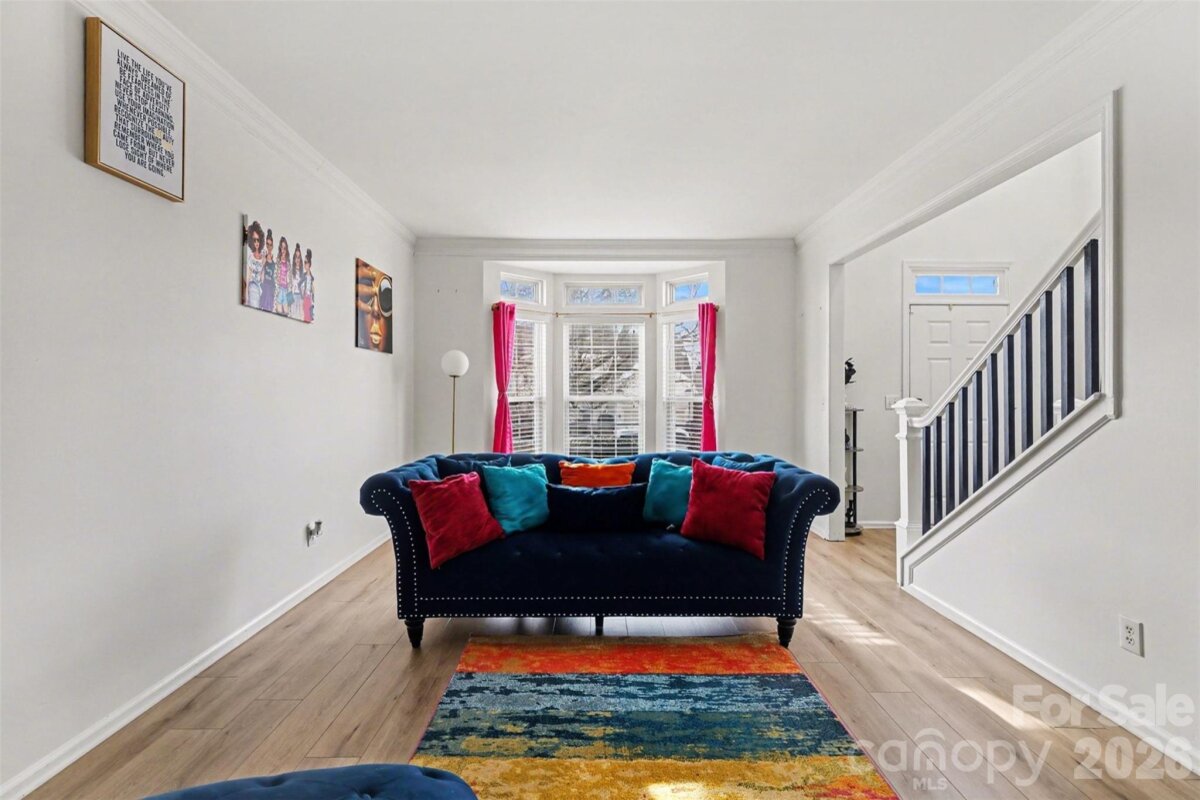 Welcome home to a beautifully renovated residence that seamlessly blends modern elegance with spacious, functional design. This home offers a desirable layout, enhanced by abundant natural light and thoughtfully curated finishes throughout. At the heart of the home is a fully updated kitchen, showcasing stylish cabinetry, a beautiful backsplash, sleek quartz countertops, and contemporary fixtures, perfectly suited for both everyday living and entertaining. New luxury plank flooring throughout adds a cohesive, high-end feel. A striking wrought iron baluster staircase serves as a standout architectural feature, adding character and visual interest while connecting the home’s generous living areas. The spacious floor plan provides flexibility for relaxing, hosting, or working from home, with well-proportioned rooms designed for comfort and flow. The owners suite boasts a spacious bathroom, soaker tub, separate sinks and vanities, and a large walk in closet. Additional updates include a newly installed fence enclosing the large flat backyard, offering added privacy and outdoor enjoyment. In addition, you’ll love the two peach trees in the back yard that bloom beautifully in the summer. Conveniently located in the desirable Stoney Creek community offering a neighborhood pool. Also near shopping, dining, and close to major roadways, this move-in-ready home presents an exceptional opportunity to enjoy living in Charlotte. Schedule your private showing today and experience all that this thoughtfully updated home has to offer.
