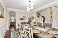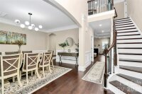 Welcome home to this stunning 4,300 sq ft full-brick residence nestled on a quiet cul-de-sac in the highly respected, family-friendly Abbington community—known for its excellent schools and abundant amenities for children of all ages. A welcoming two-story foyer sets the tone, flanked by elegant formal living and dining rooms. The oversized dining room comfortably accommodates a table for 10+, making it perfect for gatherings and holidays. Hardwood floors, crown and picture moldings, extended baseboards, and abundant natural light enhance the home’s timeless appeal. The open kitchen features granite countertops, a center island, and flows seamlessly into the main living areas—ideal for everyday living and entertaining. Updated modern lighting, 9-ft ceilings, coffered and tray ceiling details, and tasteful accent walls elevate the space throughout the first floor. The primary suite is a true retreat with vaulted ceilings, bay windows overlooking the private backyard, a spa-like bath with dual granite vanities, tiled shower and tub, and a spacious walk-in closet. Three additional bedrooms enjoy their own full bathrooms, providing comfort and privacy for family and guests. A large second-floor bonus room with 9-ft tray ceilings offers flexible space for a media room, playroom, or home office. Generously sized bedrooms with walk-in closets complete the upper level. Smart-home features convey with the property, including a Rachio 8-zone smart sprinkler system, dual Google Nest thermostats, Google cameras, and a Nest doorbell. The private backyard provides a peaceful outdoor escape. Energy-efficient tankless water heater provides on-demand hot water and reduced utility costs. Meticulously maintained and truly move-in ready—this home offers space, quality, and lifestyle in one of the area’s most desirable neighborhoods.