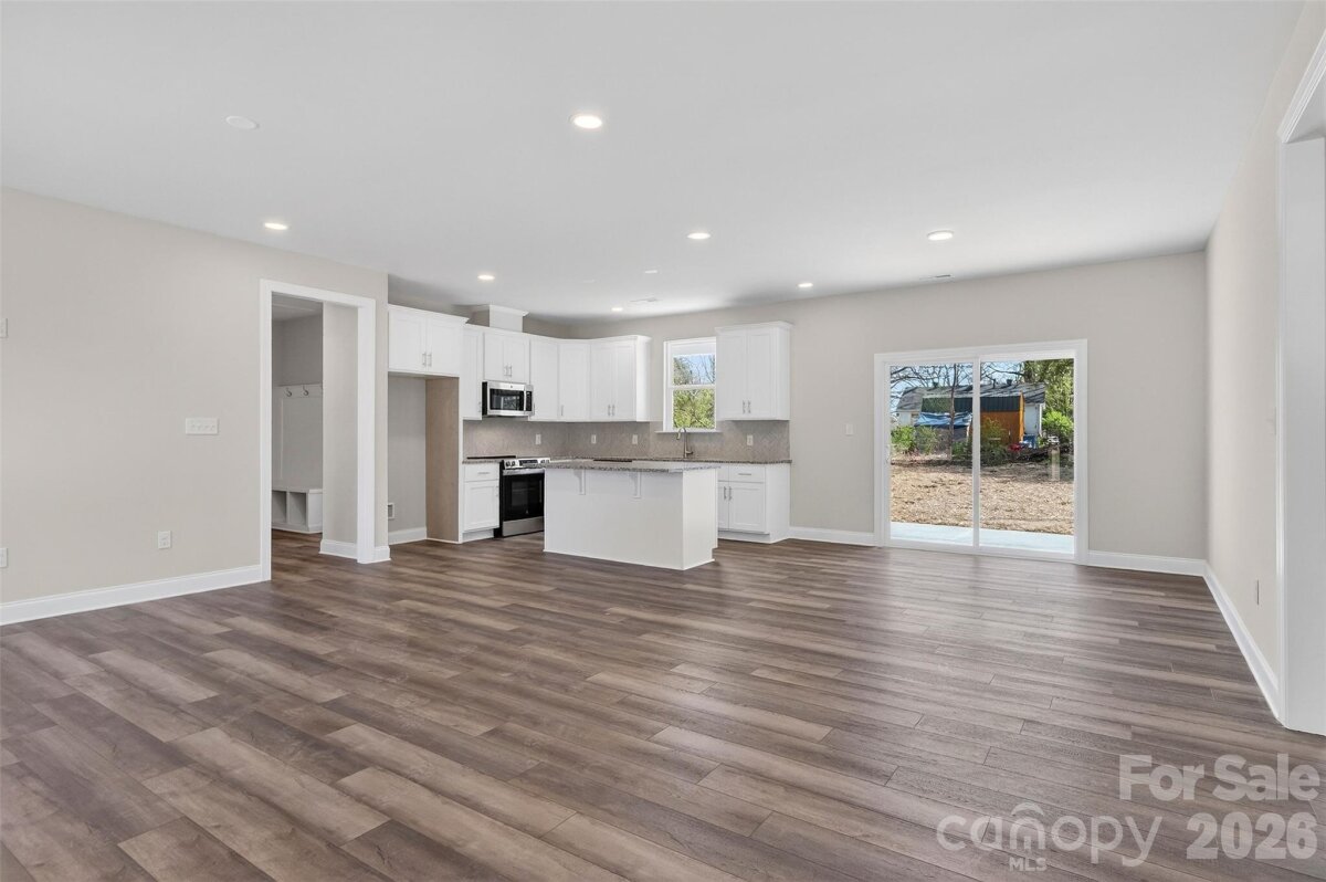 Welcome to this beautifully crafted new construction ranch home in Statesville, perfectly situated on a spacious 0.34-acre lot with no HOA. This thoughtfully designed 3-bedroom, 2.5-bath home offers 1,758 square feet of single-level living with a functional layout ideal for comfort, privacy, and entertaining. The home features a desirable split-bedroom floor plan and an open-concept living area that seamlessly connects the kitchen, dining, and living spaces. The kitchen offers modern finishes, stainless appliances, ample cabinetry, and a large walk-in pantry, providing both style and everyday convenience. The primary suite is privately located and includes a walk-in closet and en-suite bathroom, creating a comfortable retreat. Two additional bedrooms and a full bath offer flexibility for family, guests, or a home office. Additional highlights include a 2-car attached garage, spacious laundry room, durable hardboard siding, energy-efficient heat pump, and central air. Enjoy outdoor living with a backyard patio and plenty of yard space on this generously sized lot. Conveniently located just minutes from downtown Statesville, with easy access to shopping, dining, and major commuting routes including Interstate 77. This location provides quick connectivity to Mooresville, Charlotte, and the greater Lake Norman area. If you're searching for a new construction home in Statesville with a large lot, modern layout, and no HOA restrictions, this property offers an excellent opportunity to enjoy comfort, convenience, and quality craftsmanship.