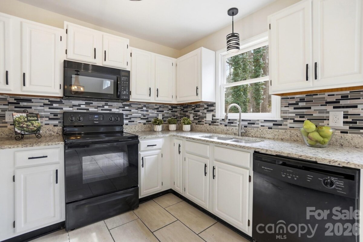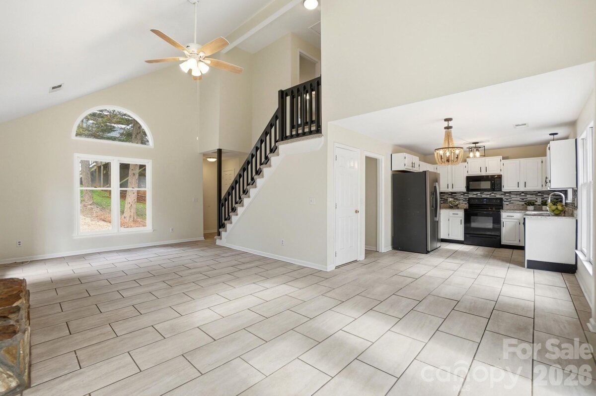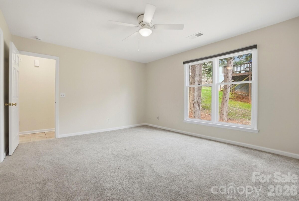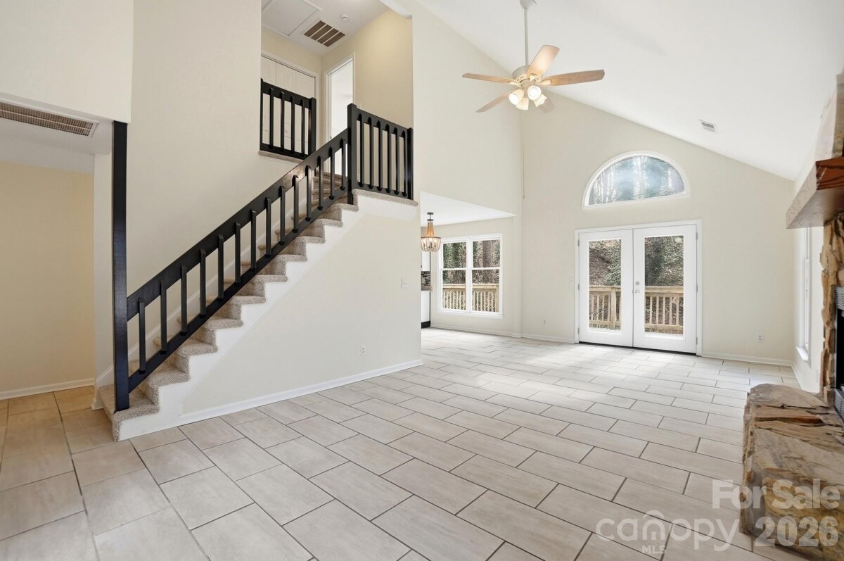 Tucked away at the end of a quiet street and backed by beautiful mature trees, this Tega Cay gem delivers the privacy you want with the charm you’ll instantly fall in love with. No rear neighbors. No through traffic. Just peaceful living in one of the area’s most desirable communities. Step inside and you’re greeted by soaring vaulted ceilings, abundant natural light, and a cozy fireplace that makes the living room feel like the heart of the home. The open flow into the dining area and kitchen creates the perfect setup for everyday living and easy entertaining. Granite countertops, freshly painted cabinets, new hardware, and updated light fixtures give the space a fresh, modern feel. The flexible layout is a standout feature — a main-level bedroom offers convenience and versatility, while upstairs you’ll find two additional bedrooms with a shared bath. Need a primary suite on the main level? Done. Prefer it upstairs? That works too. This home adapts to your lifestyle. Outside, your private, tree-lined backyard becomes your own little retreat — an ideal setting for slow mornings, relaxing evenings, and effortless entertaining. With new carpet, fresh paint throughout, updated finishes, and all appliances conveying, this home is truly move-in ready. Cozy, inviting, and full of character!