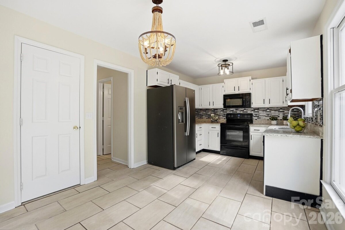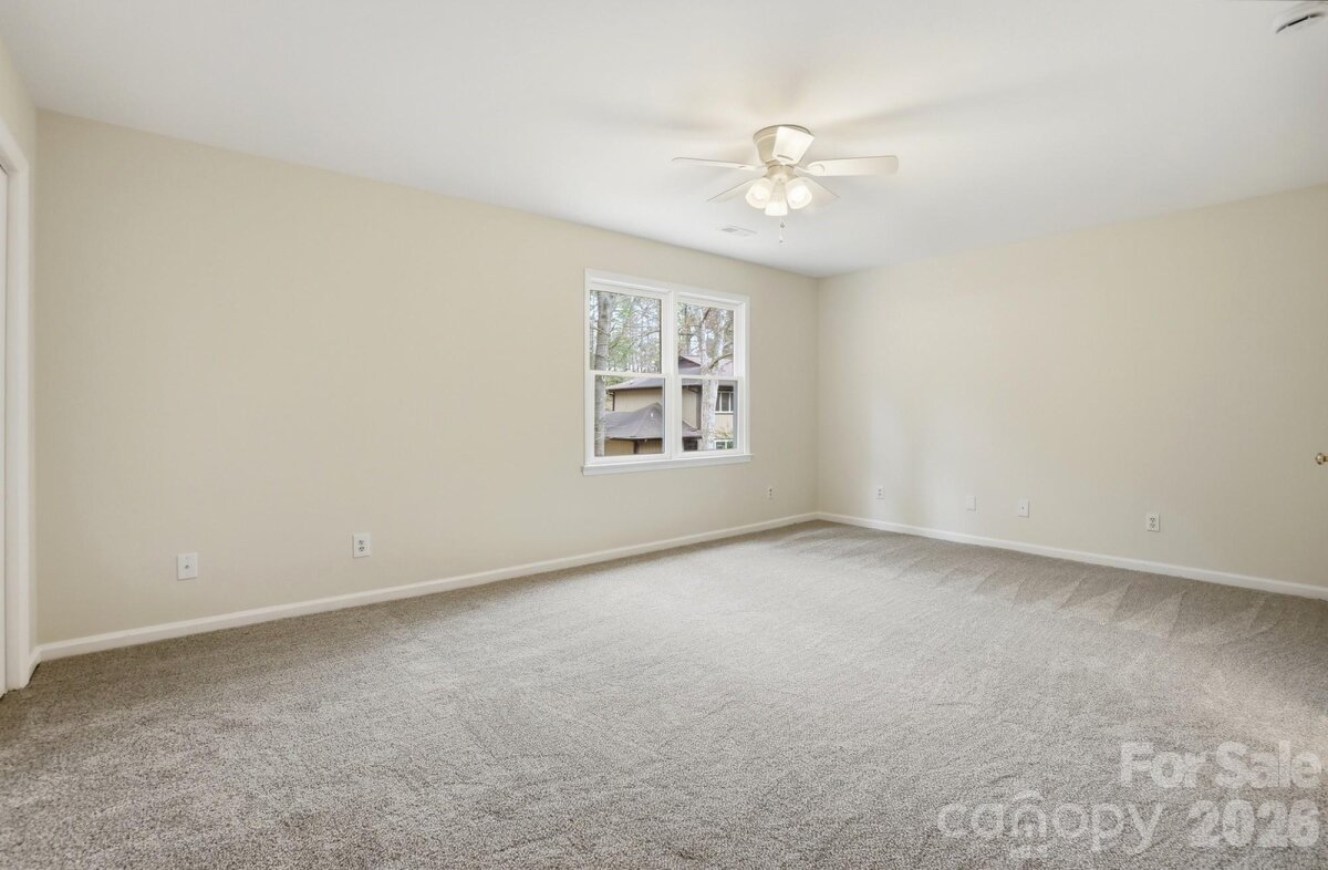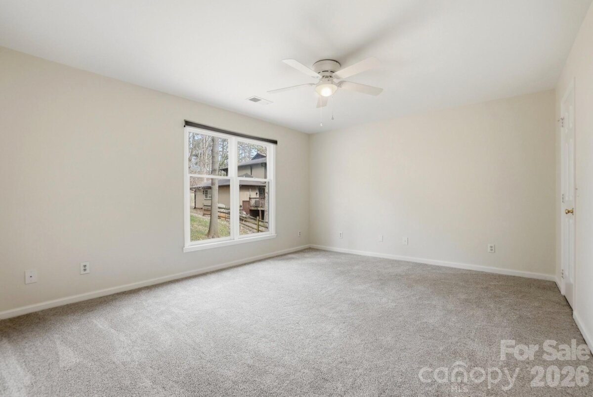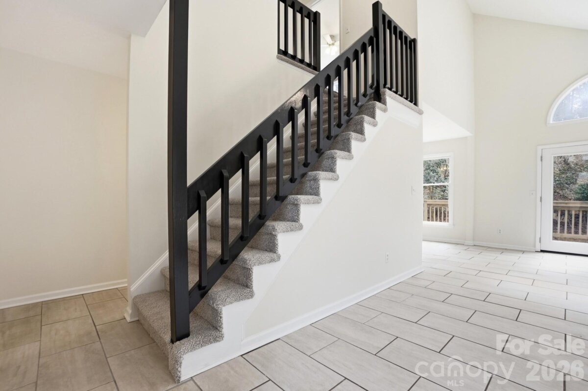 Tucked away at the end of a quiet street and backed by beautiful mature trees, this Tega Cay gem delivers the privacy you want with the charm you’ll instantly fall in love with. No rear neighbors. No through traffic. Just peaceful living in one of the area’s most desirable communities. Step inside and you’re greeted by soaring vaulted ceilings, abundant natural light, and a cozy fireplace that makes the living room feel like the heart of the home. The open flow into the dining area and kitchen creates the perfect setup for everyday living and easy entertaining. Granite countertops, freshly painted cabinets, new hardware, and updated light fixtures give the space a fresh, modern feel. The flexible layout is a standout feature — a main-level bedroom offers convenience and versatility, while upstairs you’ll find two additional bedrooms with a shared bath. Need a primary suite on the main level? Done. Prefer it upstairs? That works too. This home adapts to your lifestyle. Outside, your private, tree-lined backyard becomes your own little retreat — an ideal setting for slow mornings, relaxing evenings, and effortless entertaining. With new carpet, fresh paint throughout, updated finishes, and all appliances conveying, this home is truly move-in ready. Cozy, inviting, and full of character!