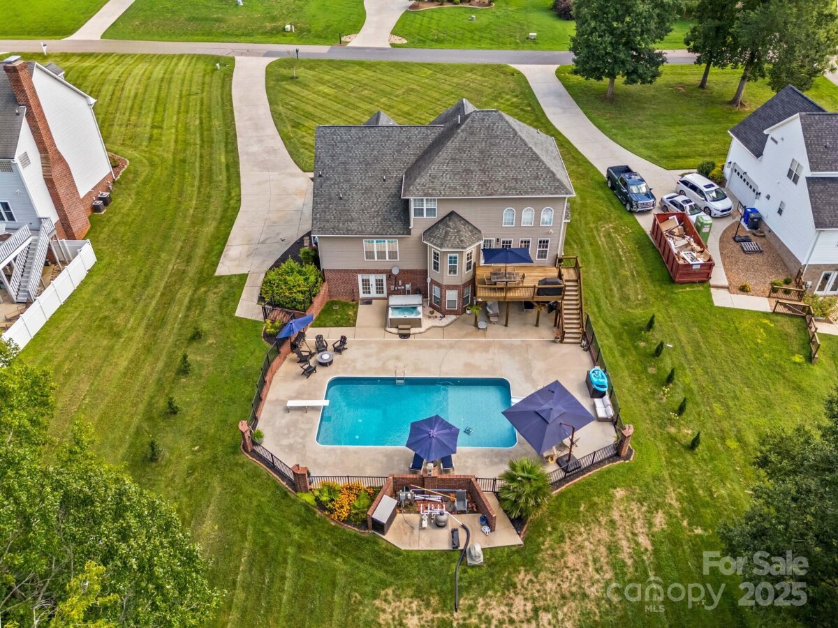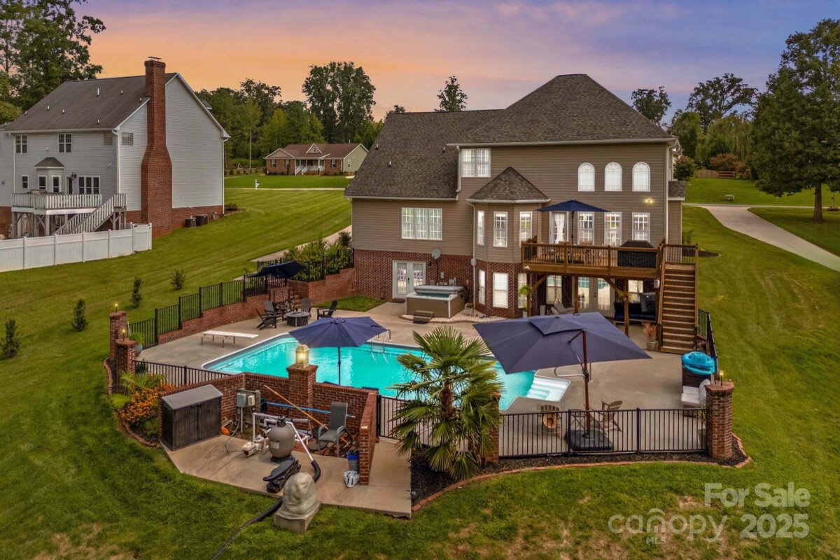 Discover elegance and comfort in the sought-after Cameron Glen subdivision! Nestled on .87 acres with a beautifully manicured yard, this home is perfect for outdoor living with a saltwater pool, spacious patio, and relaxing deck area. Boasting over 3,500 sq ft, it features 3 BRs, 3.5 baths, and multiple flex spaces on every level. The main floor offers a stunning remodeled kitchen with granite counters, open to a dramatic two-story living area with floor-to-ceiling windows overlooking the pool. Enjoy breakfast and dining areas plus a main-level primary suite with spa-like bath, stand-alone shower, and soaking tub. Upstairs you’ll find 2 BRs, a full bath, loft, and huge bonus room ideal for media or family use. The finished basement includes another living space, full bath, and office with pool views. Custom brick and iron fencing complete the private backyard. Conveniently located near Salisbury, Mooresville, and I-85! Note some fixtures are different than what is in pictures - those that are currently in home will convey. Powder Room Mirror, garage cabinets and work out equipment do NOT convey.