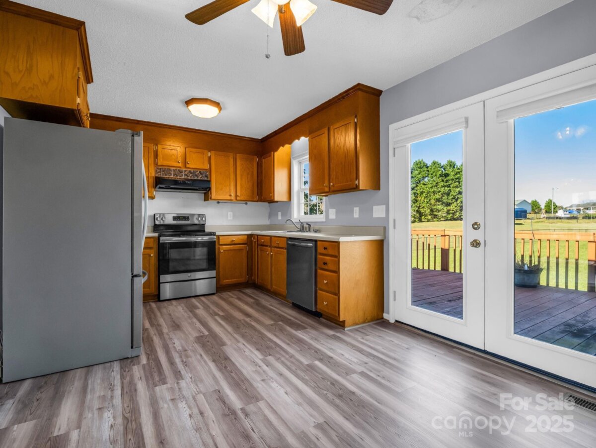 Welcome home! This 3-bedroom, 2-bath, 1,405 sq. ft. home offers the perfect mix of comfort and convenience, tucked between Boiling Springs and Shelby — close to everything, yet just outside city limits for a little extra peace and privacy. Inside, you’ll find a welcoming split-bedroom floor plan with thoughtful updates, including new kitchen and dining floors, newer LVP flooring in the living room, and beautifully updated bathrooms with ceramic tile and modern counters. The spacious master suite is a true retreat, featuring a walk-in closet, double vanity, relaxing soaker tub, stand-alone shower, and even a charming fireplace feature for added character. The heart of the home opens to a fenced backyard with a deck, perfect for pets, play, or peaceful evenings outdoors. With a two-car garage, plenty of driveway parking, and major appliances (dishwasher, stove, fridge, washer, and dryer) included, this home is truly move-in ready! To give buyers extra peace of mind, the home and carpets have been professionally cleaned :)