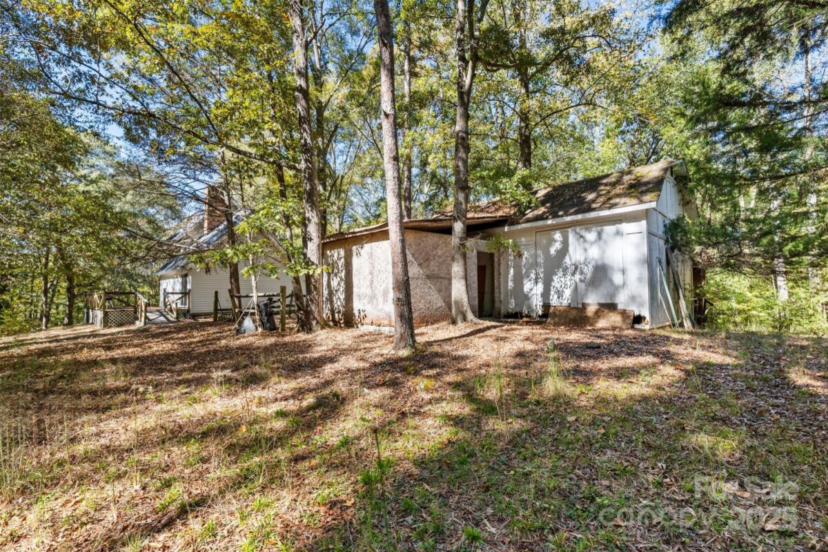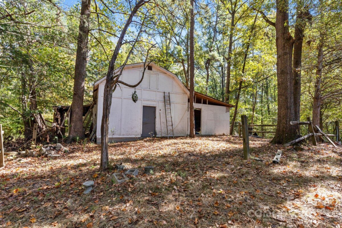 Beautiful 6+ acre private parcel that includes stream/creek is now ready for its next owner. Cute little three bed (primary on main) two bath home that could use renovation/updating. Covered front porch and large wood deck. There is a large barn/storage building on site as well. Convenient to Johnston Road and all support facilities and just a short drive to Ballantyne or Waxhaw. Bring your imagination, this canvas is ready for your creativity.