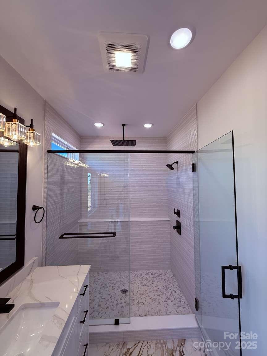 New construction all brick 4 Br/2.5 bath in prestigious Rock Barn Country Club, gated community in Walnut Ridge section w/open concept floor plan. Great room features gas fireplace with remote and blower , 11 ft ceilings with enhanced lighted tray ceilings and large windows. Kitchen features custom cabinets with k island for easy entertaining, quartz countertops and tile backsplash. Mohawk flooring throughout, Primary suite with 11 ft ceilings, large custom build walk in closet, primary bath includes elegant dual vanity with quartz countertop large walk in shower and private water closet. Split bedroom design, two additional bedrooms on main. Drop zone with storage and bench near garage entrance. Laundry room on main with sink and folding area and hanging rods for convenience. Enjoy serene mornings and quiet afternoons on the back screened porch. Custom landscaping with irrigation system. Rinnai tankless water heater w circulating system. A rare blend of comfort, style and amenities.